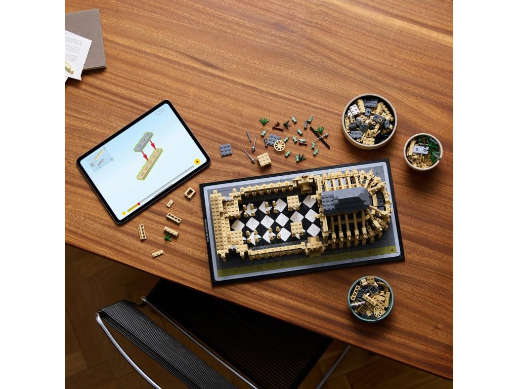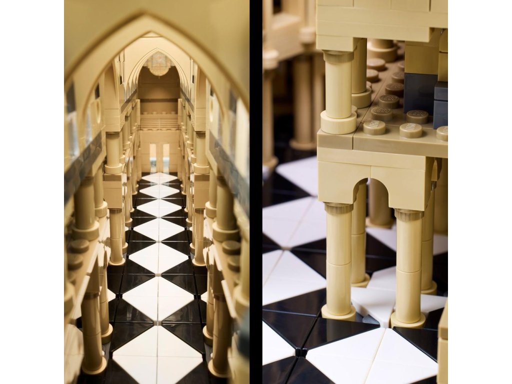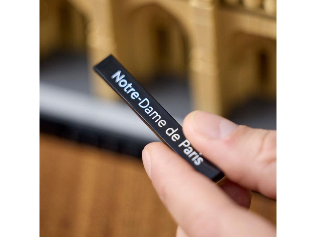 Postavte rôzne autentické detaily katedrály, ako je jej zaoblená zadná časť, zvonice, ružicové okná a hlavná veža obklopená sochami, a pridajte tabuľku s názvom, aby ste dokončili veľkolepý výstavný model Notre-Dame. Odnímte strechu a pokochajte sa jej vnútrom plným stĺpov a oblúkov a zdvihnite veže, aby ste sa mohli bližšie pozrieť dovnútra.