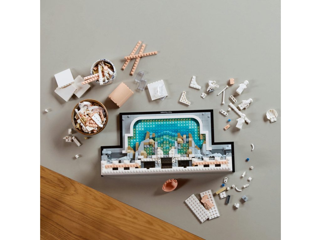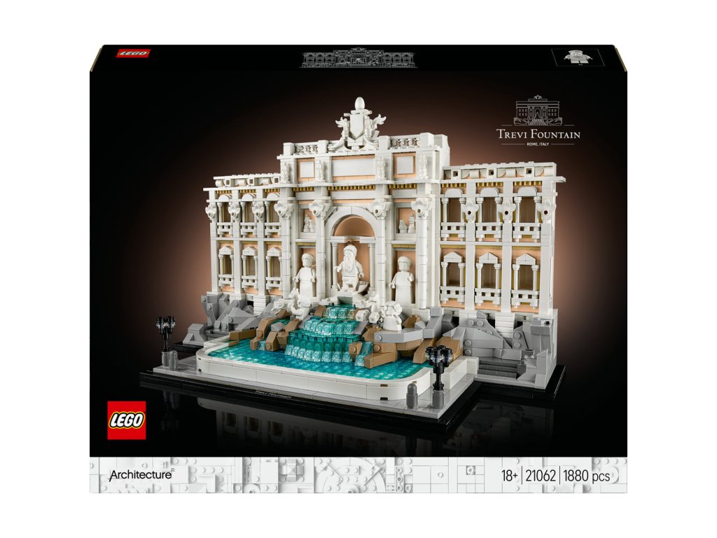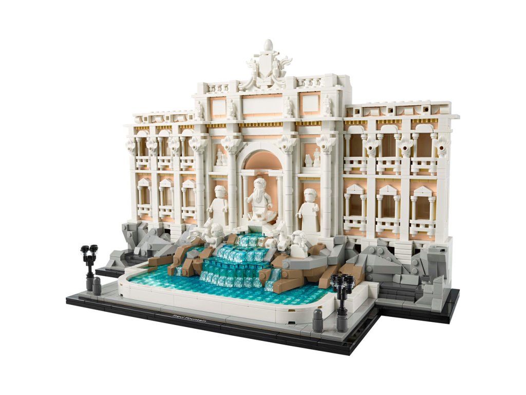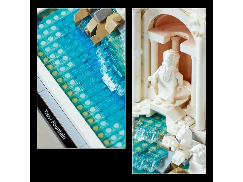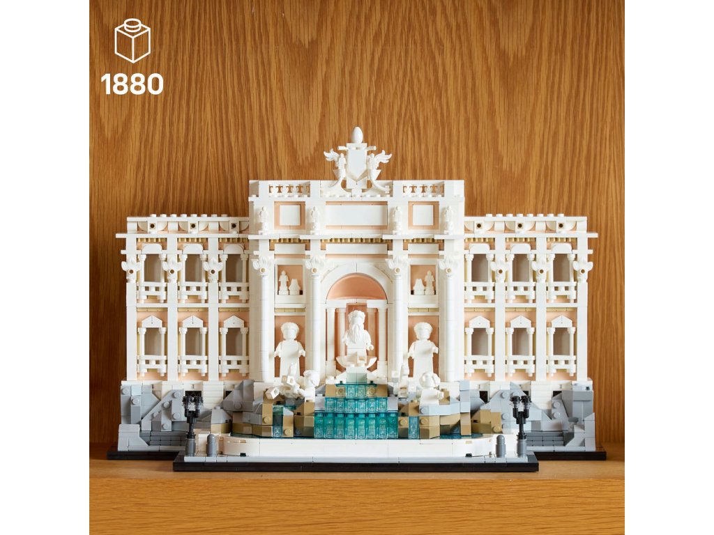 Tento tip na nostalgický darček k narodeninám či sviatkom vám počas stavania priblíži históriu aj mytológiu známej fontány. Sochy fontány sú vytvorené v podobe minifigúrok. Model bol navrhnutý tak, aby pripomínal zážitok z pohľadu na fontánu za slnečného dňa. Vyskúšajte si aktualizované staviteľské techniky a postavte autentické detaily fontány vrátane fasády paláca Palazzo Poli ako aj ikonických sôch Okeanosa v jeho voze v tvare mušle a Hojnosti a Zdravia v podobe minifigúrok. Nájdete tu aj morské koníky a Tritónov vo vode, vedľa hlavnej fontány malú „Fontánu milencov“ a ceduľku na dokončenie veľkolepého výstavného modelu Fontány di Trevi. Táto očarujúca stavebnica zo série LEGO Architecture poteší vás aj všetkých kreatívnych dospelých, ktorí obľubujú históriu, umenie, cestovanie alebo Taliansko. Stavebnica bude perfektným darčekovým predmetom z Ríma, ktorú môžete s hrdosťou podarovať akémukoľvek