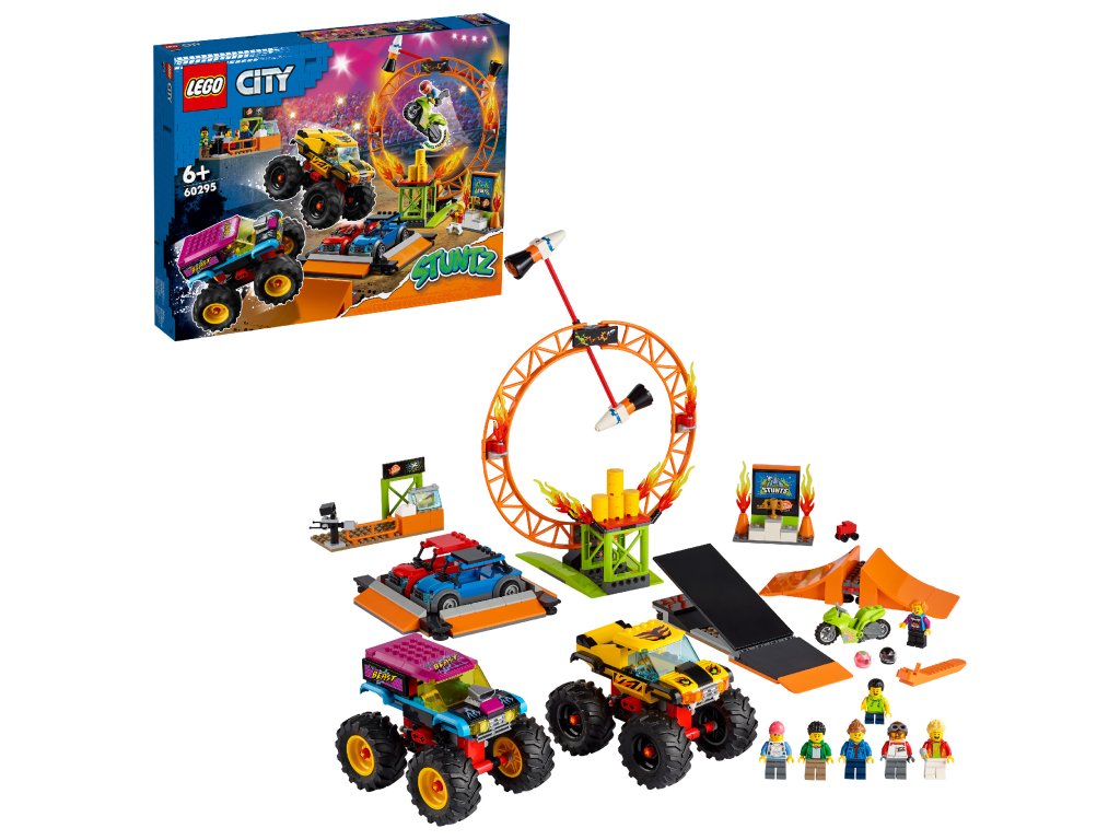 - Pripravte scénu na akčné hry s touto stavebnicou kaskadérskej arény (60295) od LEGO® City. Je plná parádnych rekvizít a výziev, ktoré otvárajú možnosti pre úžasné súťaže a napínavé predstavy.