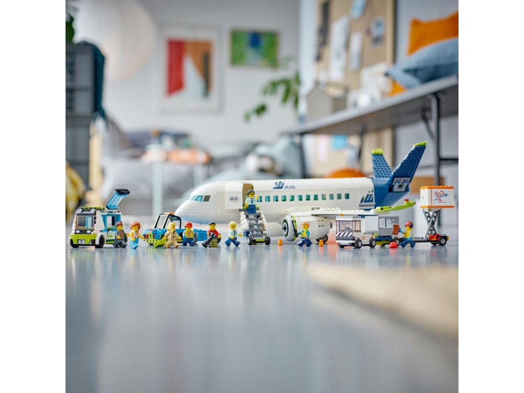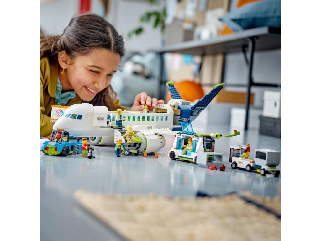 - Čo nájdete v balení? – Všetko, čo budú deti potrebovať na zostavenie osobného lietadla, schodiska, letiskového autobusu, ťahača lietadla, cateringového vozidla a vozíka na batožinu, plus 9 minifigúrok