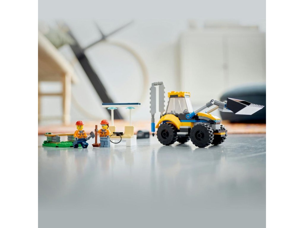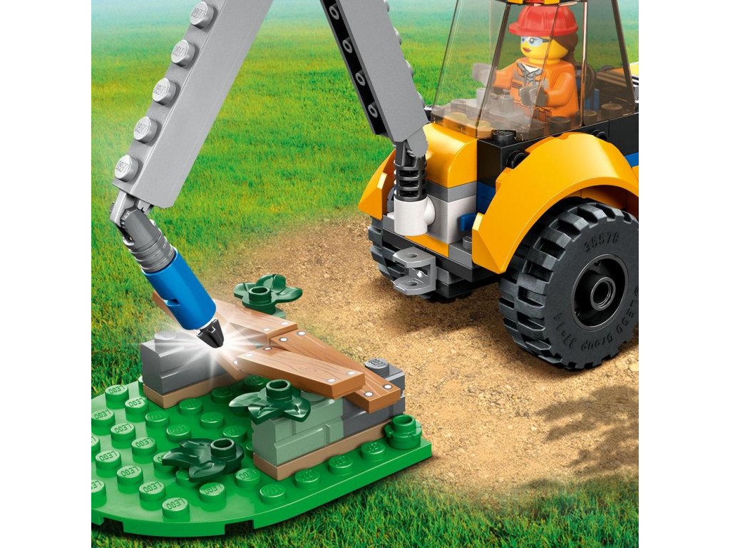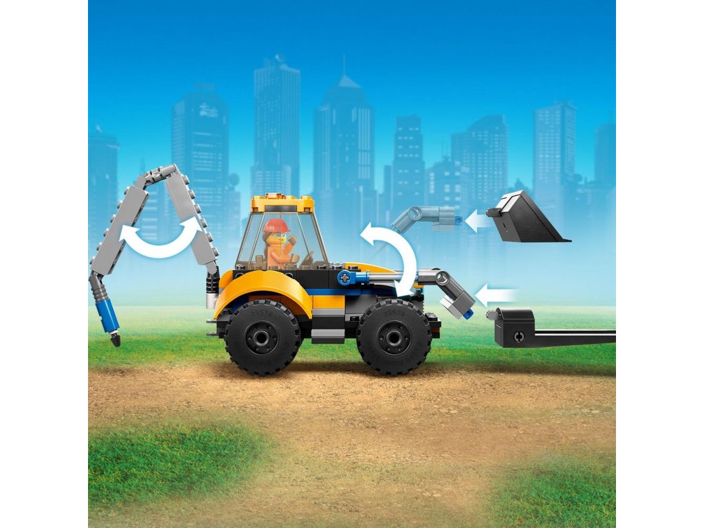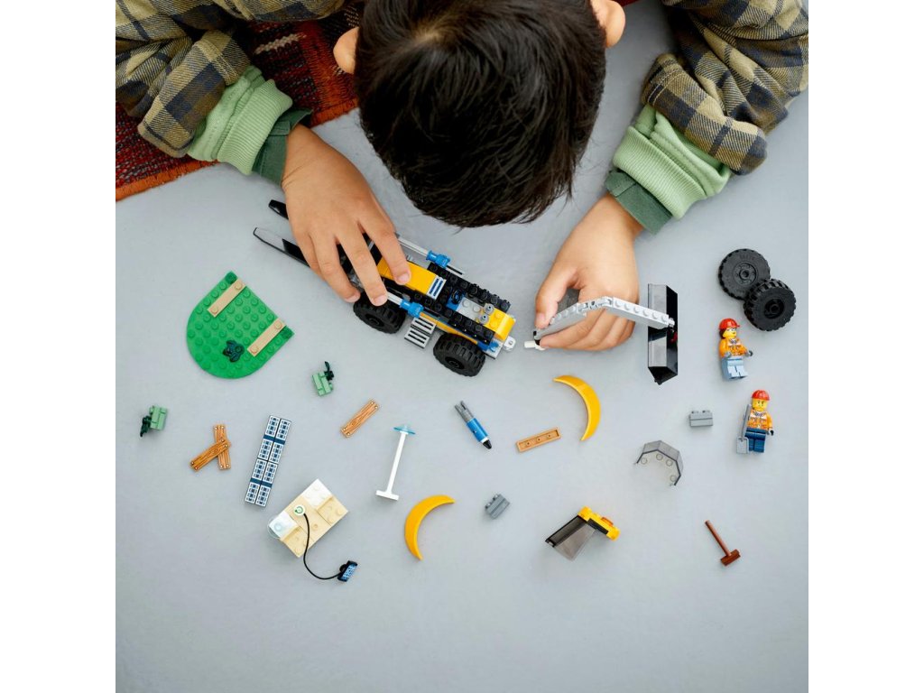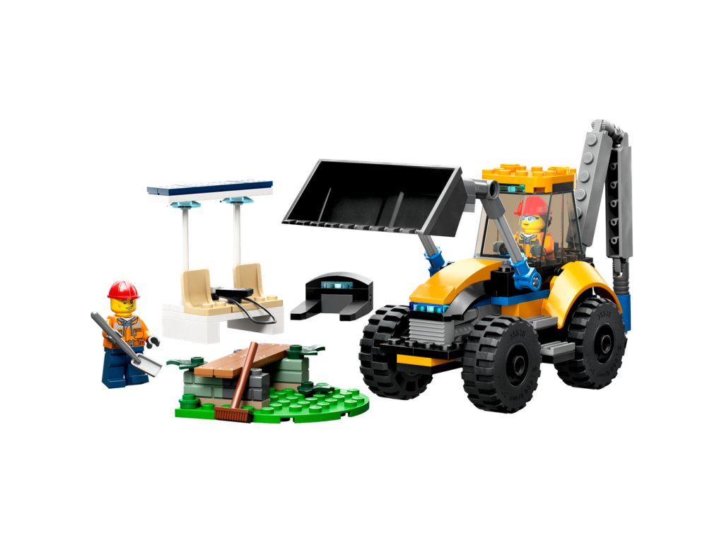 - Čo je v balení? – Všetko, čo deti potrebujú na postavenie prispôsobiteľného bagra s rýpadlom LEGO® City, park, inteligentná lavička a 2 minifigúrky stavbárov