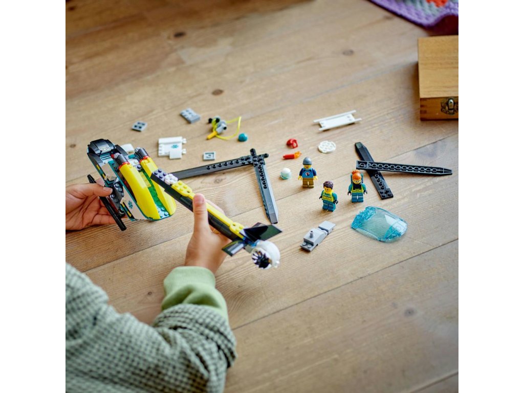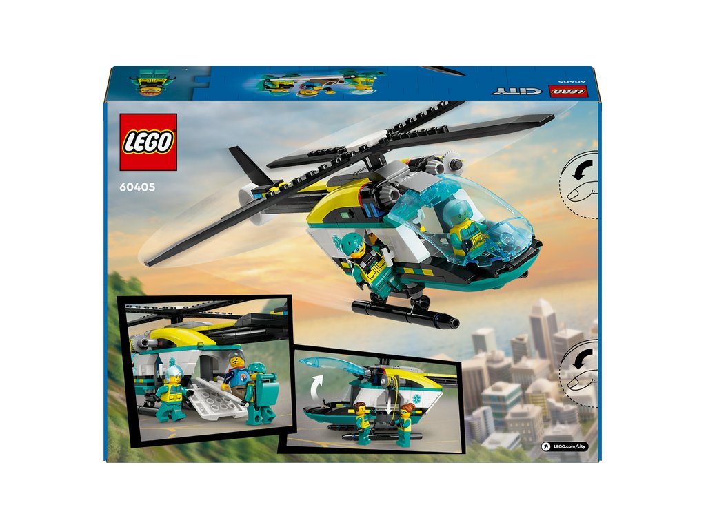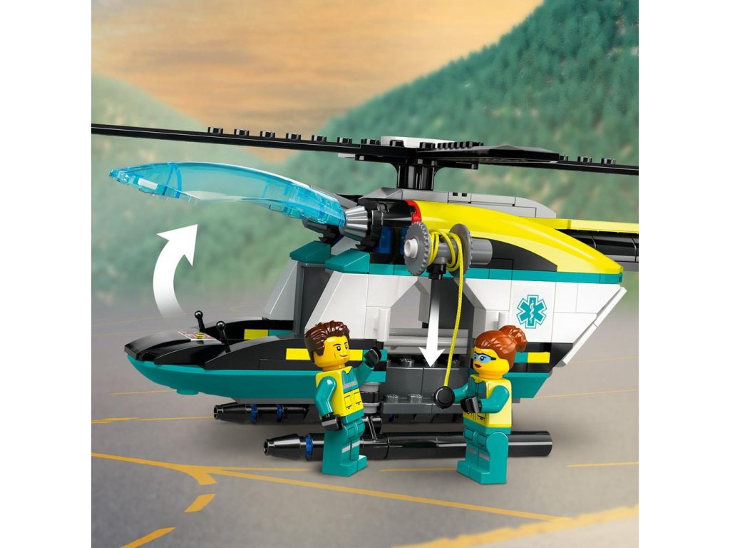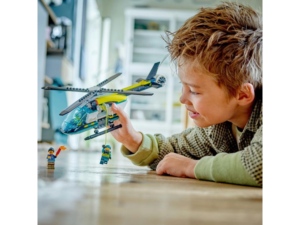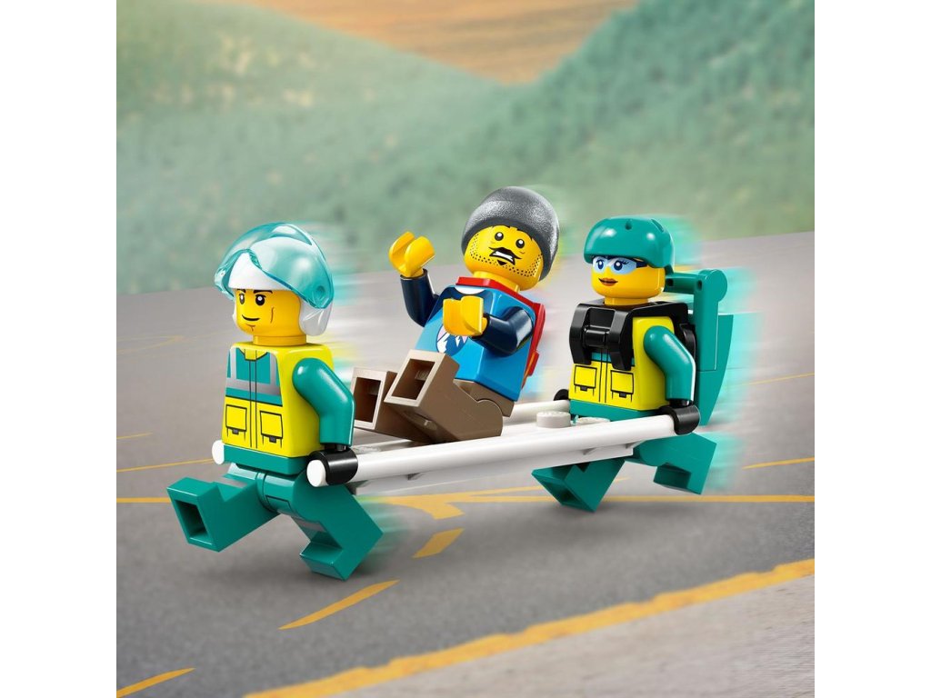 Tento model je určený pre deti od 6 rokov a obsahuje hračkársku helikoptéru s parádnym kokpitom, otáčajúcimi sa rotormi, otváracím nákladným priestorom a funkčným navijakom. Stačí pridať minifigúrky turistu, pilota a záchranára, hračkársky núdzový signál a štipku fantázie a užiť si hodiny akčnej hry.