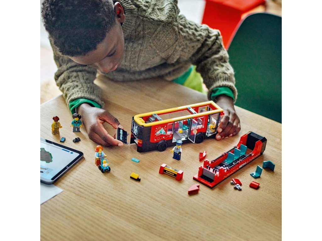 Tento hračkársky červený autobus LEGO City sa dodáva s podrobným tlačeným návodom a 3D návodom v aplikácii LEGO Builder – digitálnej príručke s intuitívnymi nástrojmi na otáčanie a približovanie, vďaka ktorým si môžu deti pri stavaní prezerať modely zo všetkých strán.