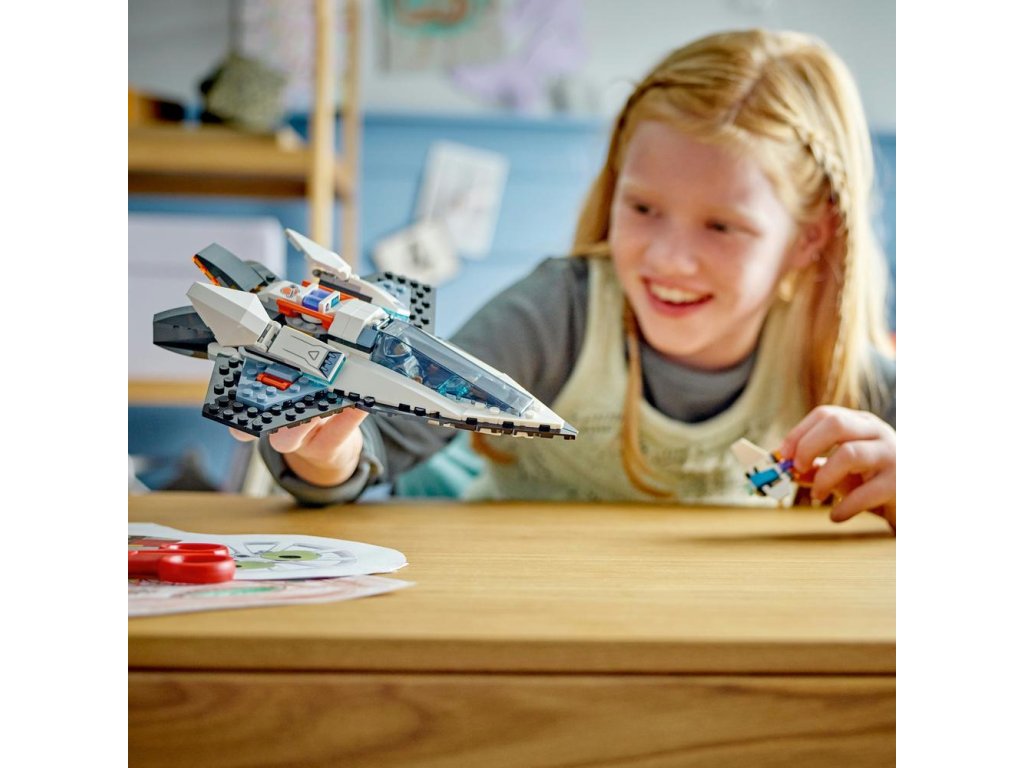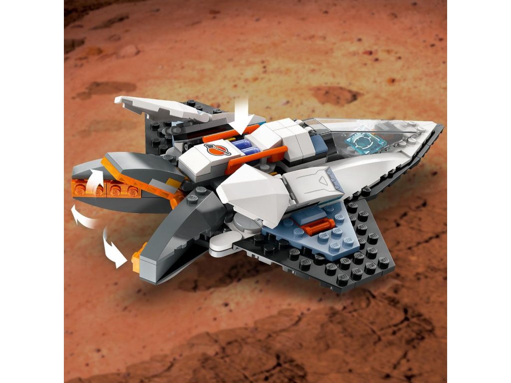 Táto vesmírna loď s miestom pre jedného pilota sa zameriava hlavne na rýchlosť. Deti do nej môžu vložiť hračkársky akumulátor, aby zapli vyklápacie hlavné trysky a vyštartovali bleskovou rýchlosťou do odľahlých kútov vesmíru. Stavebnica obsahuje aj dron, ktorý sa dá premeniť na tryskový batoh pre minifigúrku člena vesmírnej posádky.