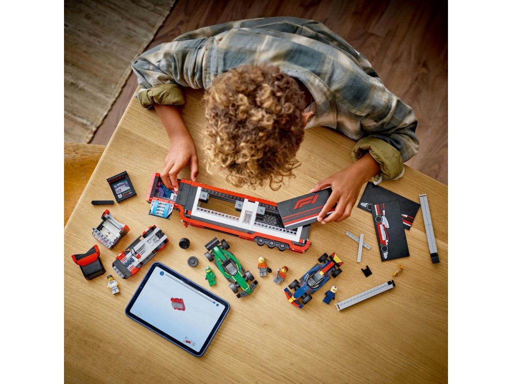 - Stavebnica LEGO® F1® s prepravným kamiónom – Malí fanúšikovia Formuly 1® od 8 rokov si zamilujú túto prémiovú stavebnicu LEGO® City Kamión F1® s autami RB20 a AMR24 F1®