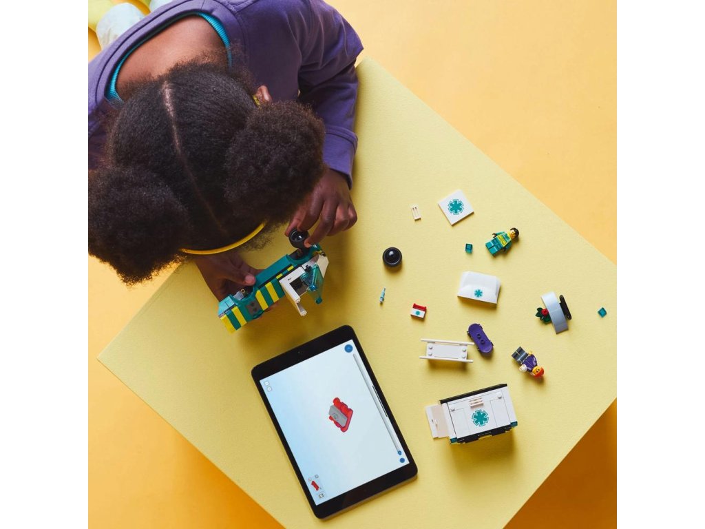 - Čo nájdete v balení? – Všetko, čo budú deti potrebovať na postavenie sanitky, ako aj prostredie so skateboardovou rampou a minifigúrkami skateboardistu a záchranára na hry na postavy