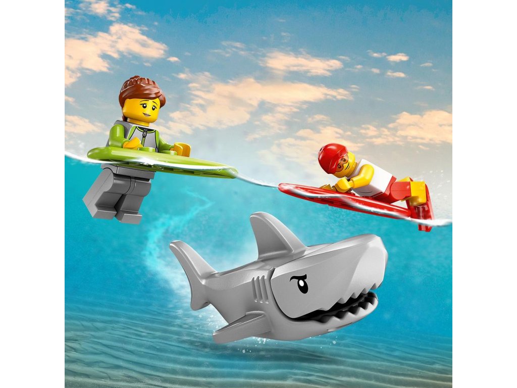- Čo nájdete v balení? – Toto záchranné auto pre plavčíka obsahuje všetko, čo budú deti potrebovať na stavbu terénneho auta, ako aj minifigúrky plavčíka a surfera a figúrku žraloka na nápadité hry