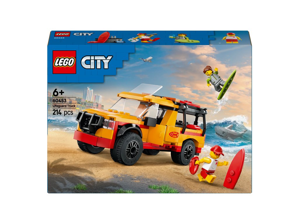 Pripravte sa na poriadne dobrodružstvá na pláži so stavebnicou LEGO® City Záchranné auto pre plavčíka (60453) pre deti od 6 rokov. Toto parádne hračkárske nákladné auto s otváracími dverami, výklopnými zadnými dverami a strešným oknom je plné pomôcok pre prvú pomoc na pláži, vrátane 2 surfov, plutiev, ďalekohľadu a lekárničky. Stavebnica obsahuje aj minifigúrky plavčíka a surfera a figúrku žraloka na tvorivé hry a vymýšľanie príbehov.