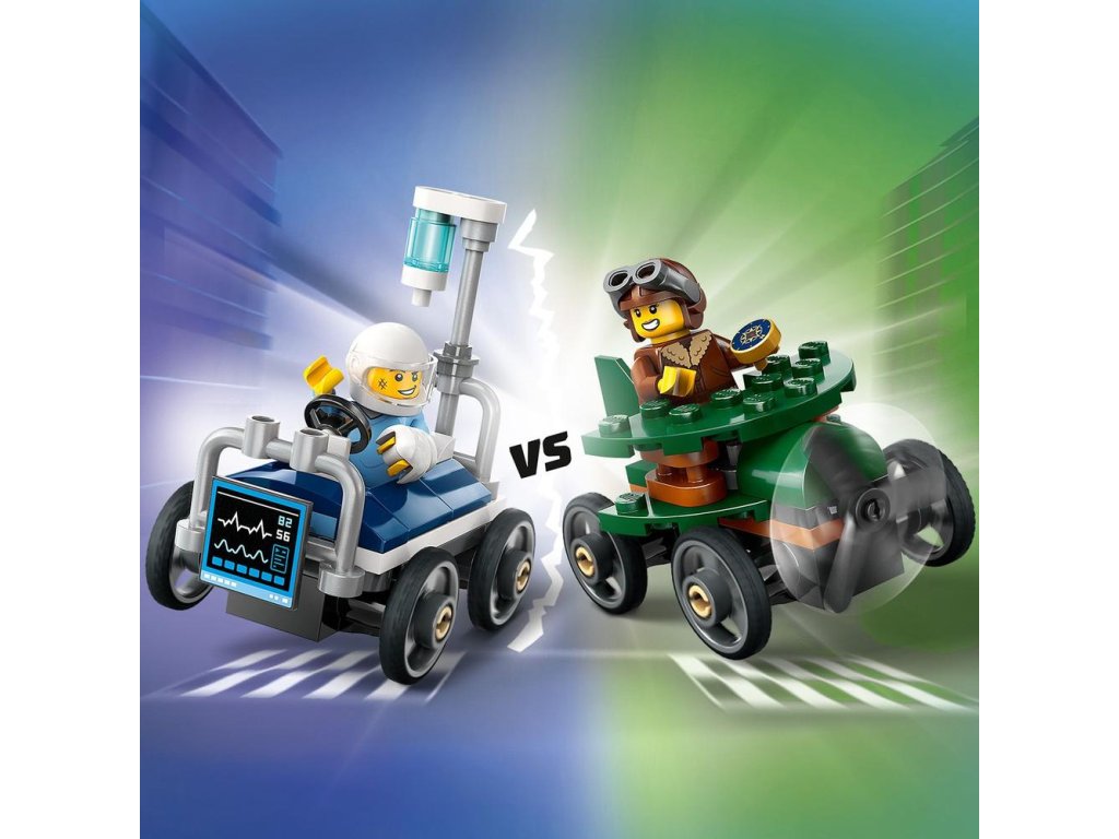 Doprajte svojmu malému fanúšikovi pretekov tento LEGO City Pretekársky balíček: Lietadlo vs. nemocničné lôžko (60459) pre deti od 5 rokov. Tento zábavný hračkársky balíček obsahuje 2 pretekárske motokáry a 2 minifigúrky. Deti môžu postaviť pilota vo vznášajúcom sa lietadle a pretekať proti pacientovi na prekvapivo rýchlom nemocničnom lôžku. Kto vyhrá? Sadnite za volant týchto epických mestských pretekov!