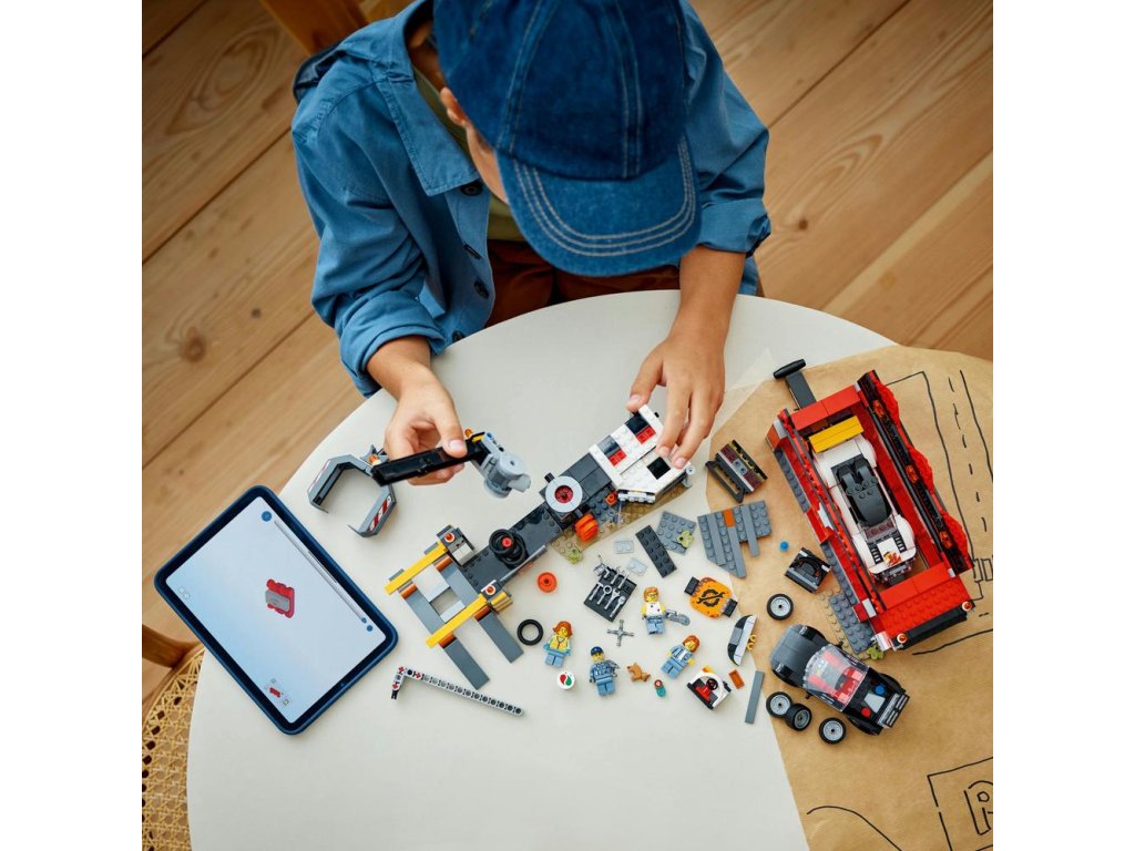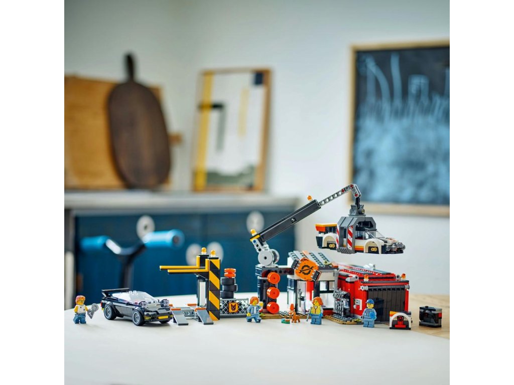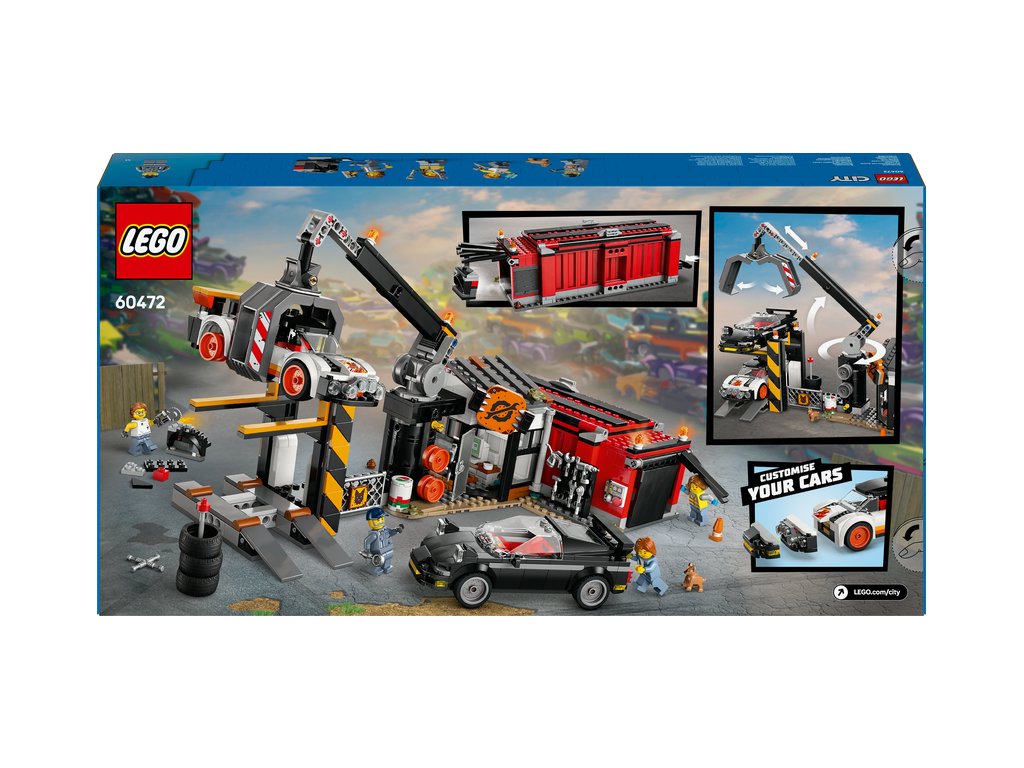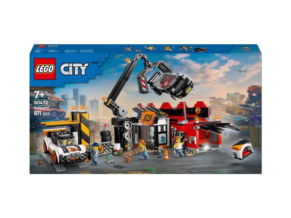 Deti od 7 rokov sa môžu ponoriť do napínavého sveta recyklácie so stavebnicou LEGO® City Šrotovisko s autami. Toto šrotovisko LEGO je plné zábavných prvkov vrátane funkčného pazúrového žeriavu a drviča, ktorý stlačením páčky premení vozidlá na kocky. Deti môžu tiež pomôcť rozobrať diely z 2 klasických áut z 80. rokov minulého storočia a predávať zachránené diely, ráfiky a pneumatiky zo starej kancelárskej budovy. Stačí pridať 4 minifigúrky zamestnancov šrotoviska a zábava sa môže začať!