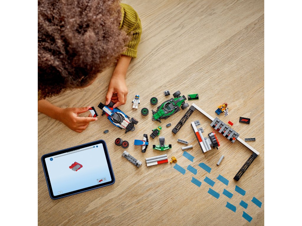 - Zábavné digitálne stavanie – Táto stavebnica LEGO® F1® obsahuje návod v aplikácii LEGO Builder, kde si deti môžu ukladať stavebnice, sledovať svoj pokrok a približovať a otáčať si modely v 3D počas stavania