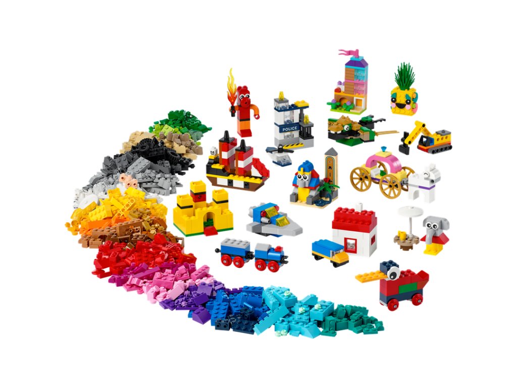 - Záplava pestrofarebných kociek LEGO® – deti, dospelí a starí rodičia si s touto 1 100-dielikovou stavebnicou LEGO môžu postaviť čokoľvek, čo im len zíde na um