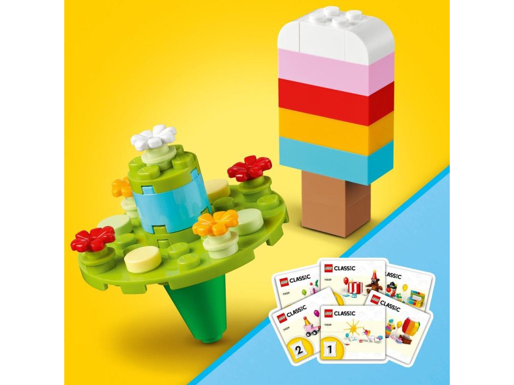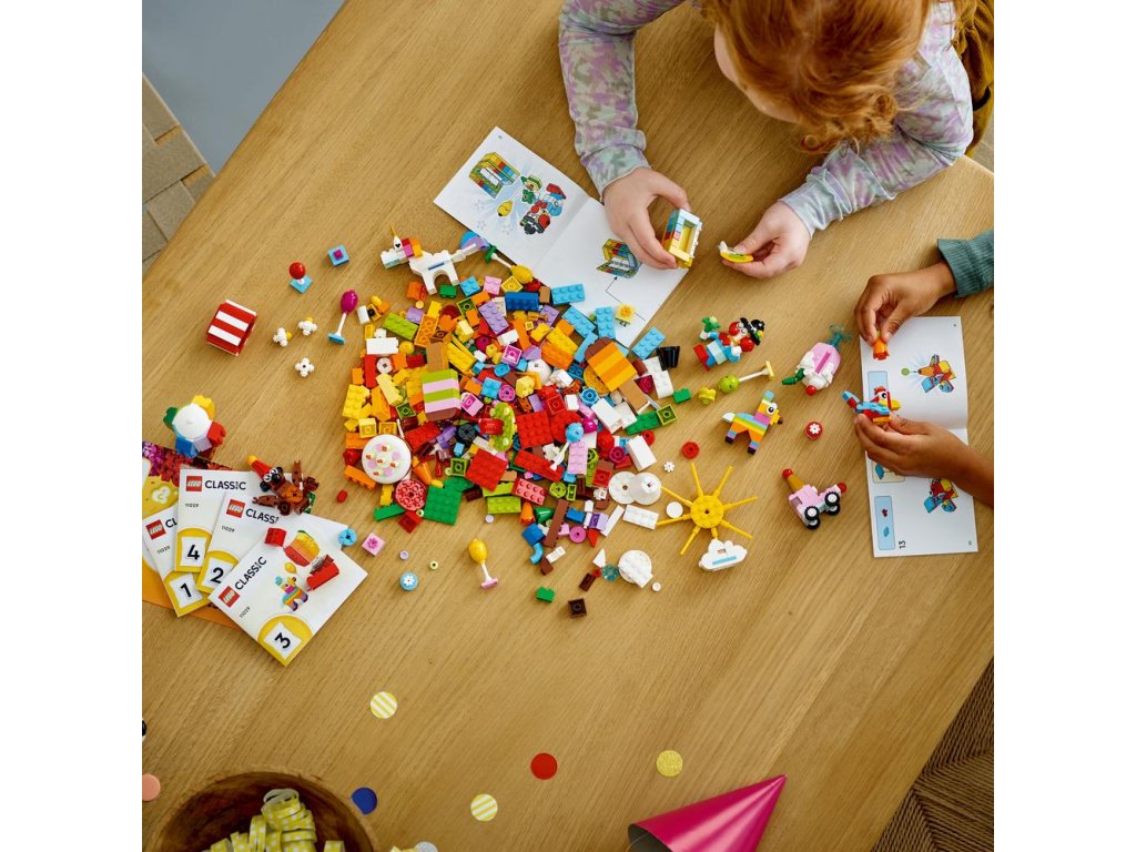 • Zábavné modely na spoločné stavanie – Priatelia a príbuzní môžu zdolávať staviteľské výzvy s pestrofarebnou stavebnicou LEGO® Classic Kreatívny párty box (11029) určený pre deti od 5 rokov • Stavebnica plná aktivít – 900 pestrofarebných kociek je rozdelených do 6 vrecúšok, z ktorých každý
