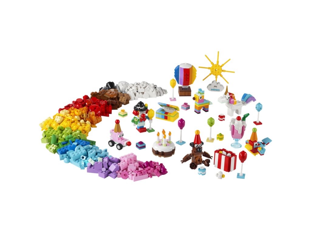 Strávte spoločné chvíle s priateľmi a príbuznými pri zábavných aktivitách zo stavebnice LEGO® Classic Kreatívny párty box (11029). Táto zmes kociek je vhodná od 5 rokov a pripraví vám príjemný skupinový zážitok pri každej príležitosti. Stavajte spoločne so zábavným 900-dielikovým boxom Podeľte sa o chvíle tvorivej zábavy s touto pestrofarebnou zbierkou kociek. Každé zo 6 vrecúšok obsahuje kocky a zrozumiteľný tlačený návod na postavenie 2 jednoduchých modelov. Nechýba medzi nimi medvedík, klaun, jednorožec, piñata, dúha, torta ani malé darčeky. Ide o skvelú skupinovú aktivitu na oslavy – ale tvorivé stavanie sa nekončí ani potom! V appke LEGO Builder navyše nájdete digitálnu verziu návodu na stavanie. Skvelá voľba pre celú rodinu Hračky LEGO Classic 5+ vkladajú nápady a inšpiráciu do rúk detí a dospelým ponúkajú skvelú príležitosť zabaviť sa pri stavaní a prežiť vzácne vývojové míľniky spolu s