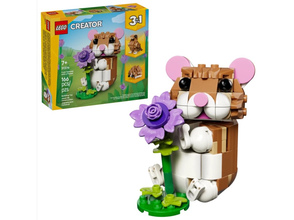 - HRAČKÁRSKE ZVIERATKO 3 V 1 PRE DETI – Vďaka modelu LEGO® Creator 3 v 1 Roztomilý škrečok s kvetinou (31376) si môžu dievčatá a chlapci od 7 rokov vystavať a prestavať z jedného balenia kociek až 3 rozličné roztomilé hračky