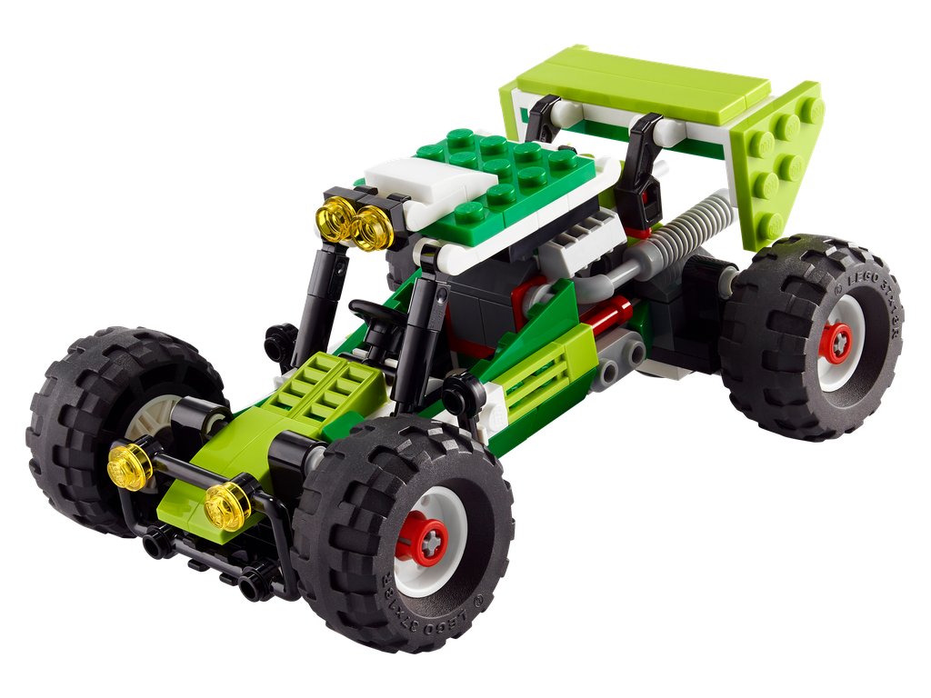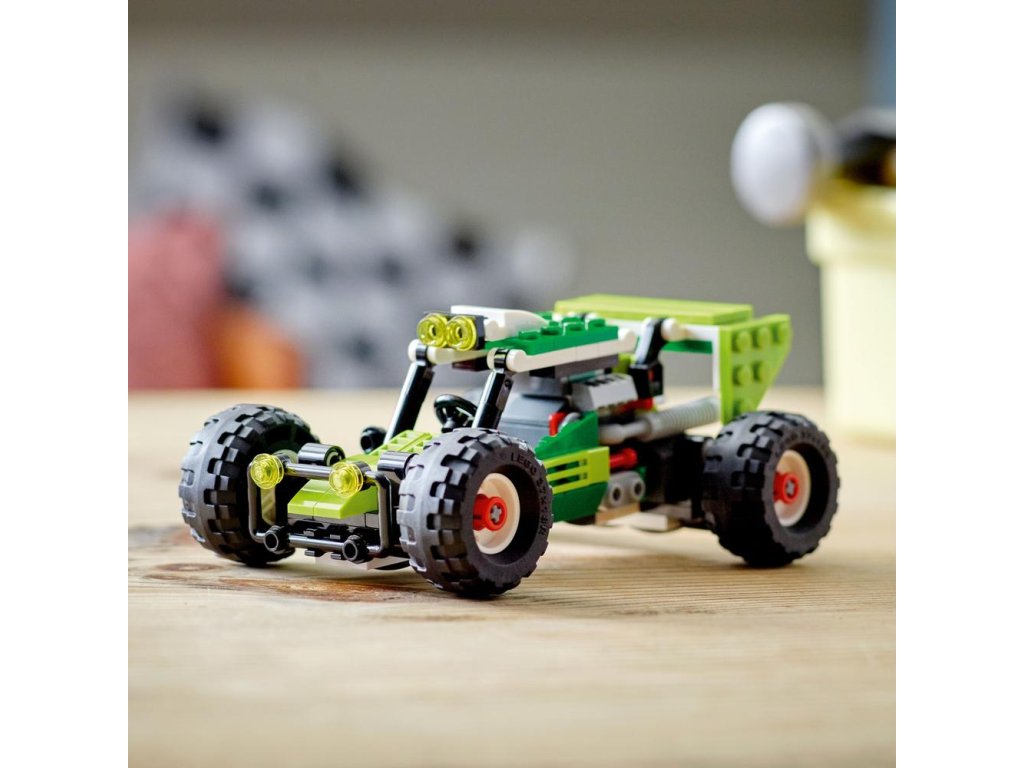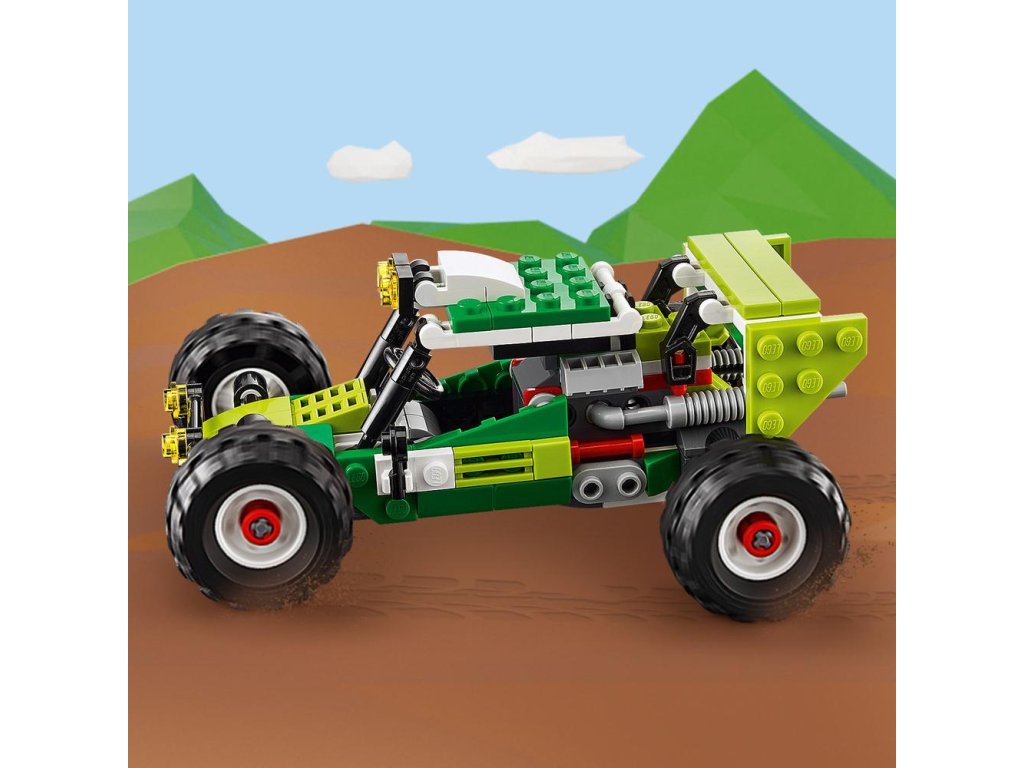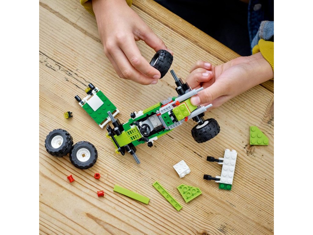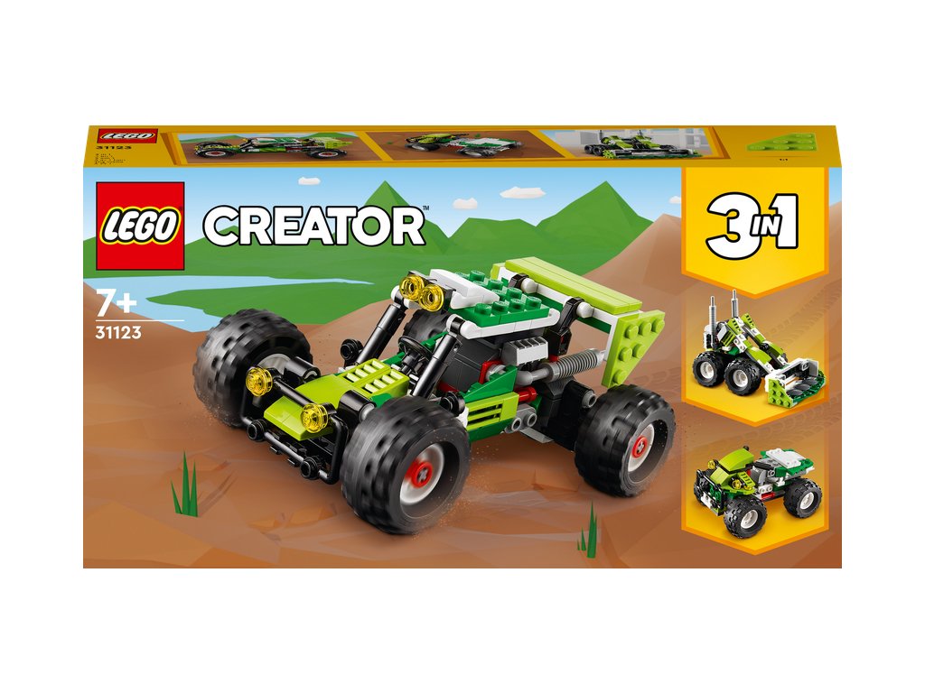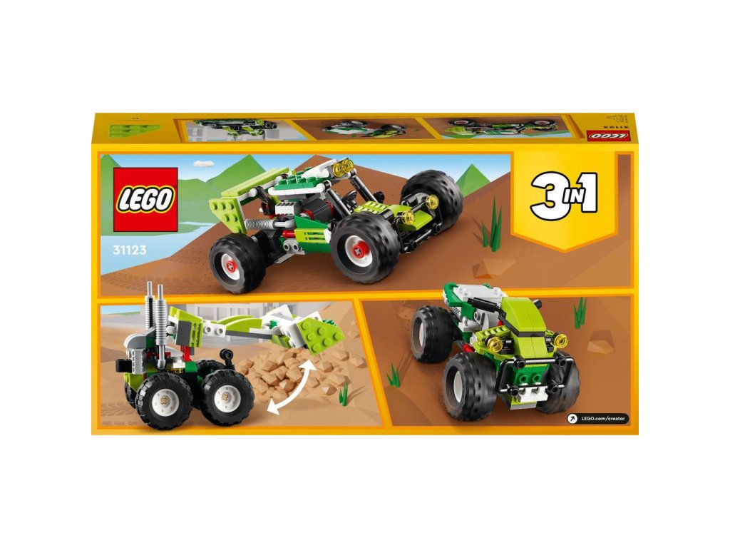 - 3 modely v 1 – deti môžu zažiť hry plné nápadov so stavebnicou LEGO® Creator 3 v 1 Terénna bugina (31123), ktorá obsahuje modely buginy, predného nakladača a štvorkolky (terénneho vozidla)