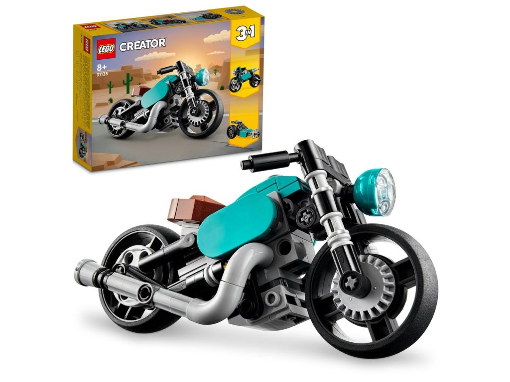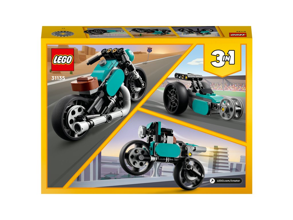 - 3 vozidlá v 1 – Deti od 8 rokov môžu využívať hry plné nápadov so stavebnicou LEGO® Creator 3 v 1 Retro motorka (31135), ktorá obsahuje motorku, cestný motocykel a dragster triedy top palivo.