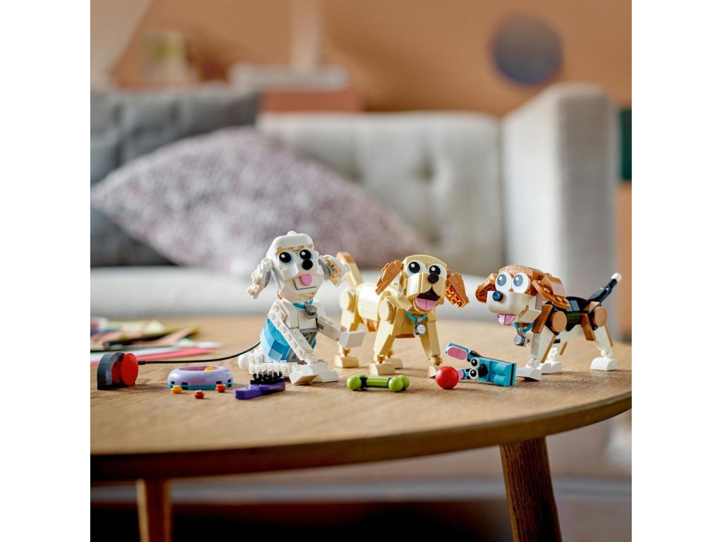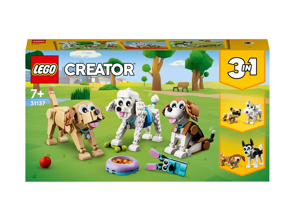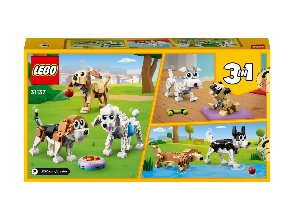 - Stavebnica 3 v 1 – Deti si môžu postaviť 3 rôzne skupinky psov s touto fantastickou stavebnicou LEGO® Creator 3 v 1 Roztomilé psíky (31137)