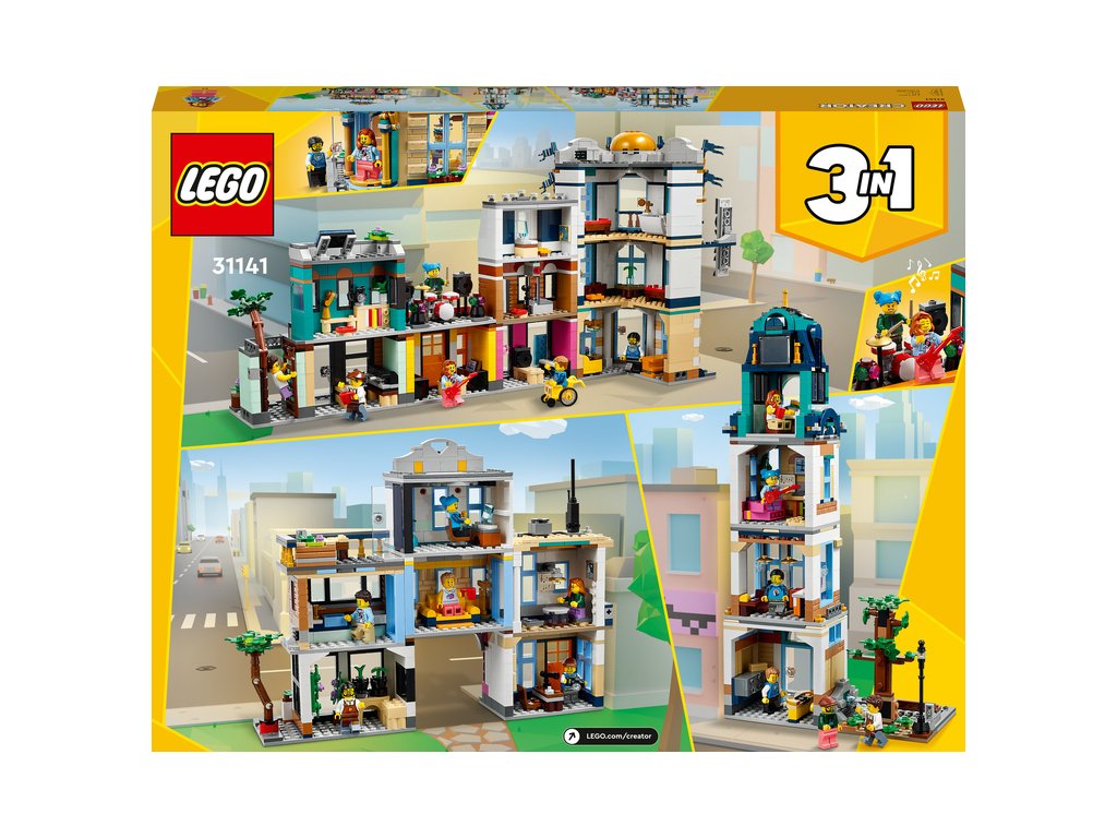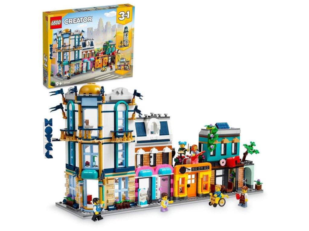 - Hračka 3 v 1 – S touto stavebnicou LEGO® Creator 3 v 1 Hlavná ulica (31141) si deti môžu zinscenovať napínavé príbehy a balenie obsahuje 3 modely v 1: hračkársku ulicu v meste, budovu v štýle art deco a ulicu s trhom