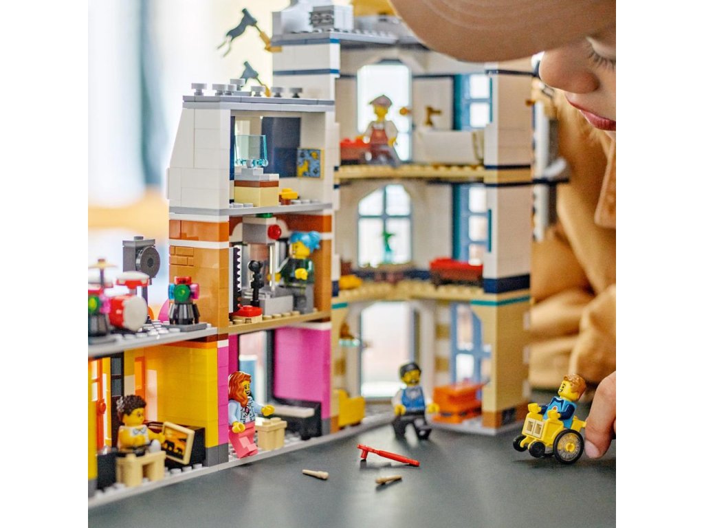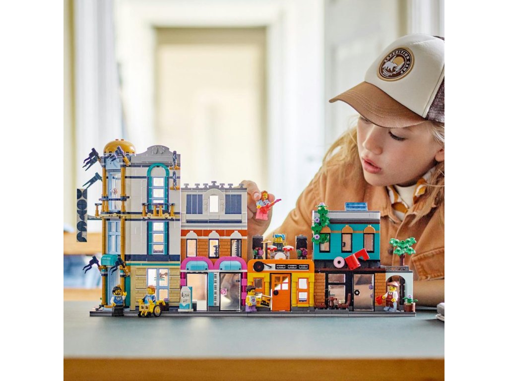 Fanúšikovi LEGO® od 9 rokov čaká zábavný výlet do mesta s touto stavebnicou LEGO Creator 3 v 1 Hlavná ulica (31141). Model obsahuje 4 rôzne budovy: 3-poschodový hotel na rohu ulice, obchod s hudobninami, obchod s platňami s kapelou na streche a kaviareň. Všetky budovy možno prepojiť a vytvoriť celú ulicu, alebo ich môžete oddeliť a hrať sa s nimi samostatne. Hračkárske stavby inšpirujú k nekonečnej tvorivej hre Malí stavitelia si s touto stavebnicou LEGO Creator 3 v 1 môžu vytvoriť 3 rôzne mestské modely. Môžu postaviť Hlavnú ulicu so 4 budovami, prestavať ju na 4-poschodový obytný dom v štýle art deco s parkom alebo na ulicu s bránou do trhoviska, fotoateliérom a kvetinárstvom. V každej stavebnici nájdete aj 6 minifigúrok na hry na postavy. Zozbierajte si 3 stavebnice a 3 jednotlivé modely môžete prepojiť do jednej skutočne veľkolepej mestskej scény. Digitálna zábava pre staviteľov LEGO Aplikácia LEGO Builder prevedie