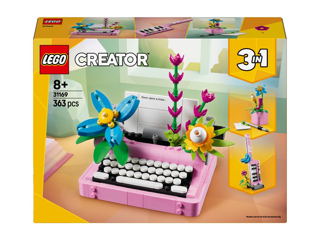 - 3 možnosti, ako postaviť kvetinové stavebnice LEGO® z 1 balenia – S modelom 3 v 1 Creator Písací stroj s kvetmi 3 v 1 si deti od 8 rokov môžu postaviť a prestavovať 3 rôzne modely z jedného balenia kociek