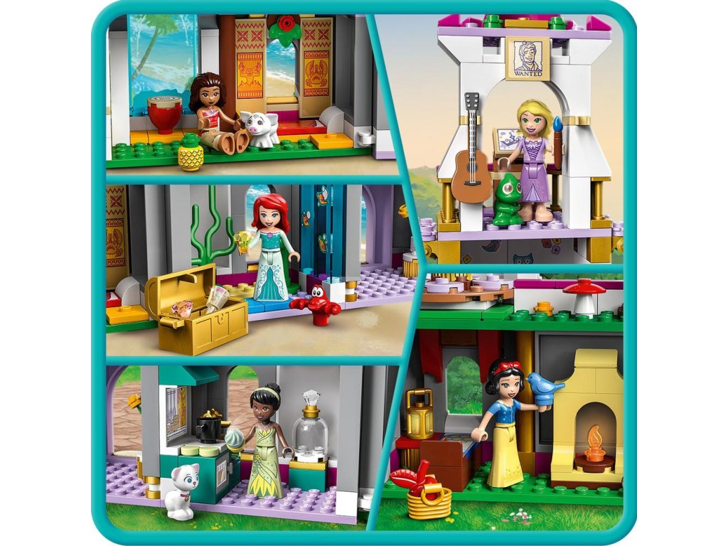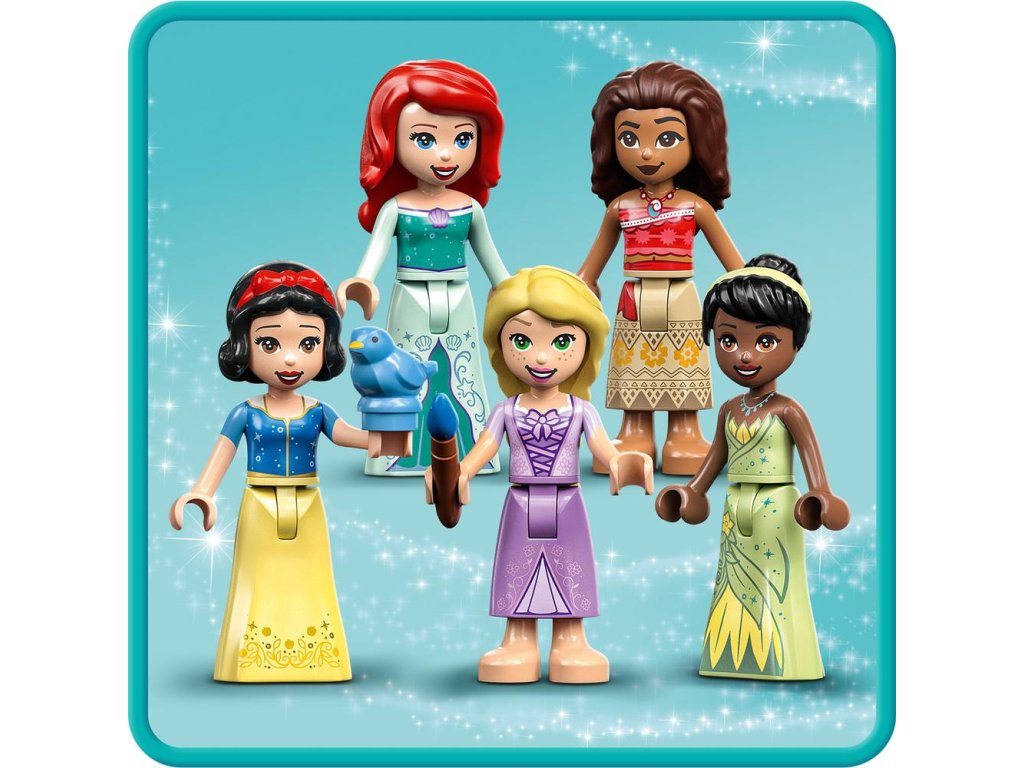 - Ikonické postavičky – Tento set je navrhnutý pre neobmedzené nápady dobrodružstvá. Nechýbajú ani minibábiky Disneyho Moany, Ariely, Rapunzel, Snehulienky a Tiany, ako aj 5 figúrok zvierat LEGO®