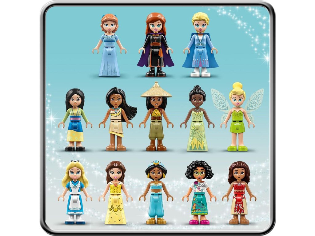 - Hrdinky z obrazovky – Obsahuje LEGO® figúrky minibábik Disney princezien Mulan, Pocahontas, Rayu, Vaianu, Tianu, princeznú Jazmínu, Mirabel, Elsu, Annu, Alice, Wendy, Cililing a Belly pre nekonečnú hru na postavy
