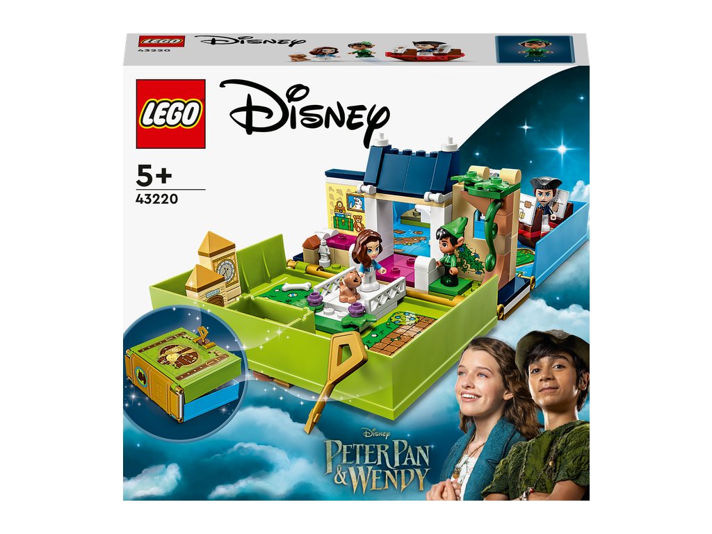 V stavebnici LEGO® ǀ Disney Peter Pan a Wendy a ich rozprávková kniha dobrodružstiev (43220) čakajú na fanúšikov Disney a Petra Pana vo veku od 5 rokov nekonečné príbehy. Kniha vznikla na základe pripravovaného filmu Peter Pan a Wendy a obsahuje domček Darlingovcov so spálňou, vežu Big Ben, úkryt Stratených chlapcov, ostrov lebiek, pirátsku loď, 3 LEGO mikrobábiky, LEGO figúrku zvieratka a kľúč. Aplikácia LEGO Builder deti prevedie jednoduchým a intuitívnym staviteľským dobrodružstvom a umožní im modely približovať, otáčať v 3D zobrazení, ukladať si stavebnice a sledovať svoj postup stavania. Nápadité hry všade so sebou S touto prenosnou a uzamykateľnou knihou čaká deti množstvo kreatívnych hier. Nechýba v nej plno herných doplnkov na vymýšľanie vlastných príbehov. Vaši najmenší si s ňou môžu užiť kopu zábavy alebo ju spojiť s inými stavebnicami (na predaj samostatne). Kultové postavy Deti sa môžu s kreatívnou sta