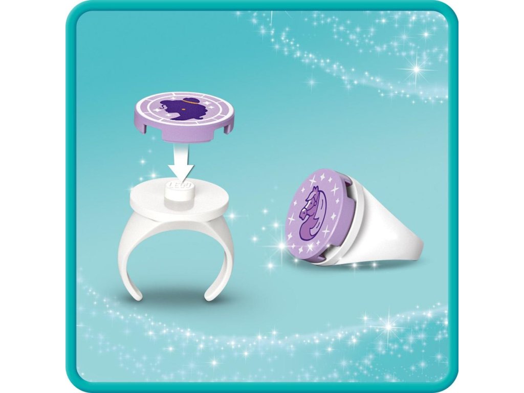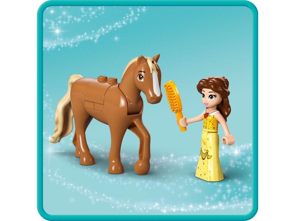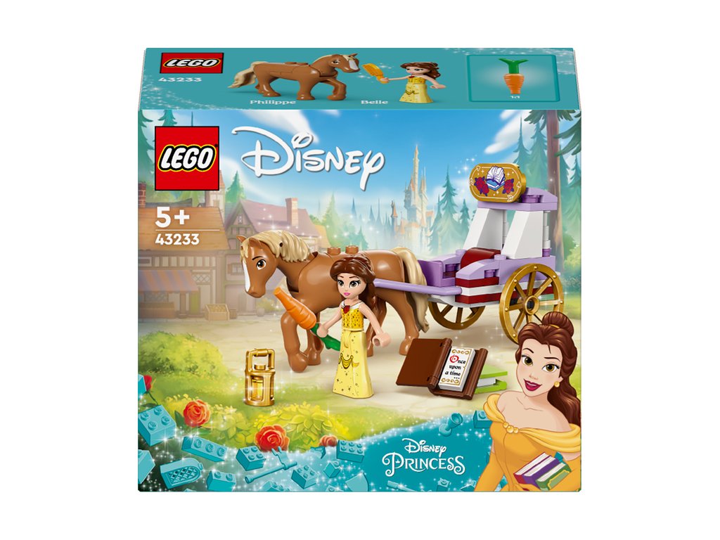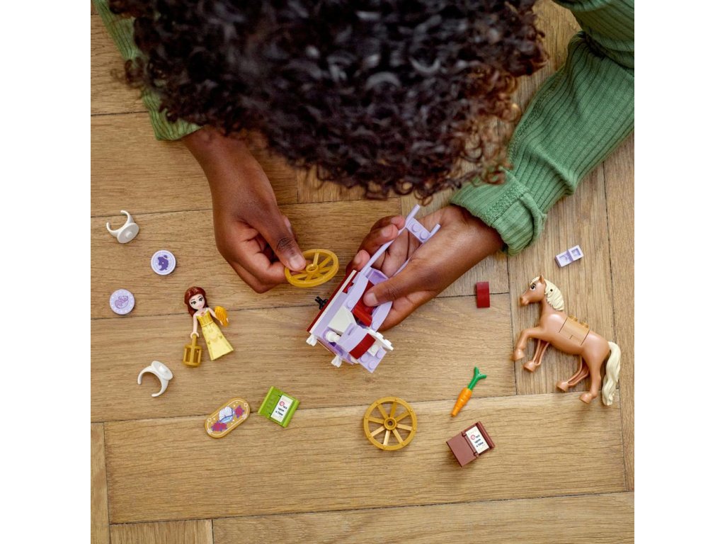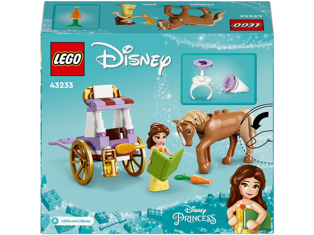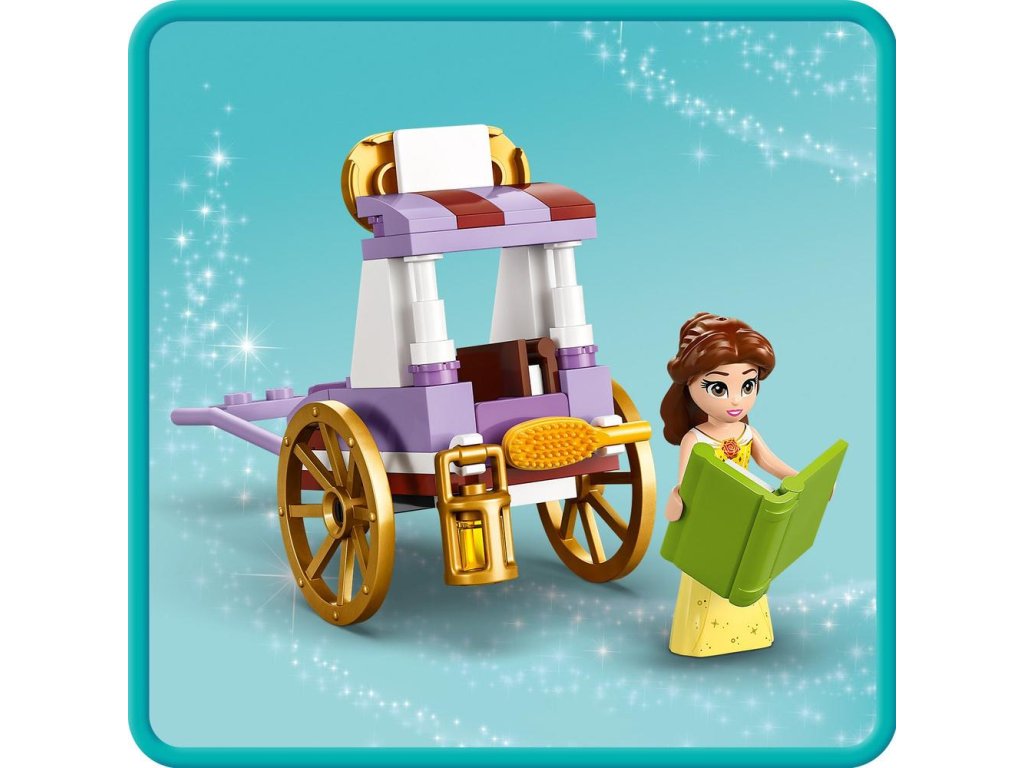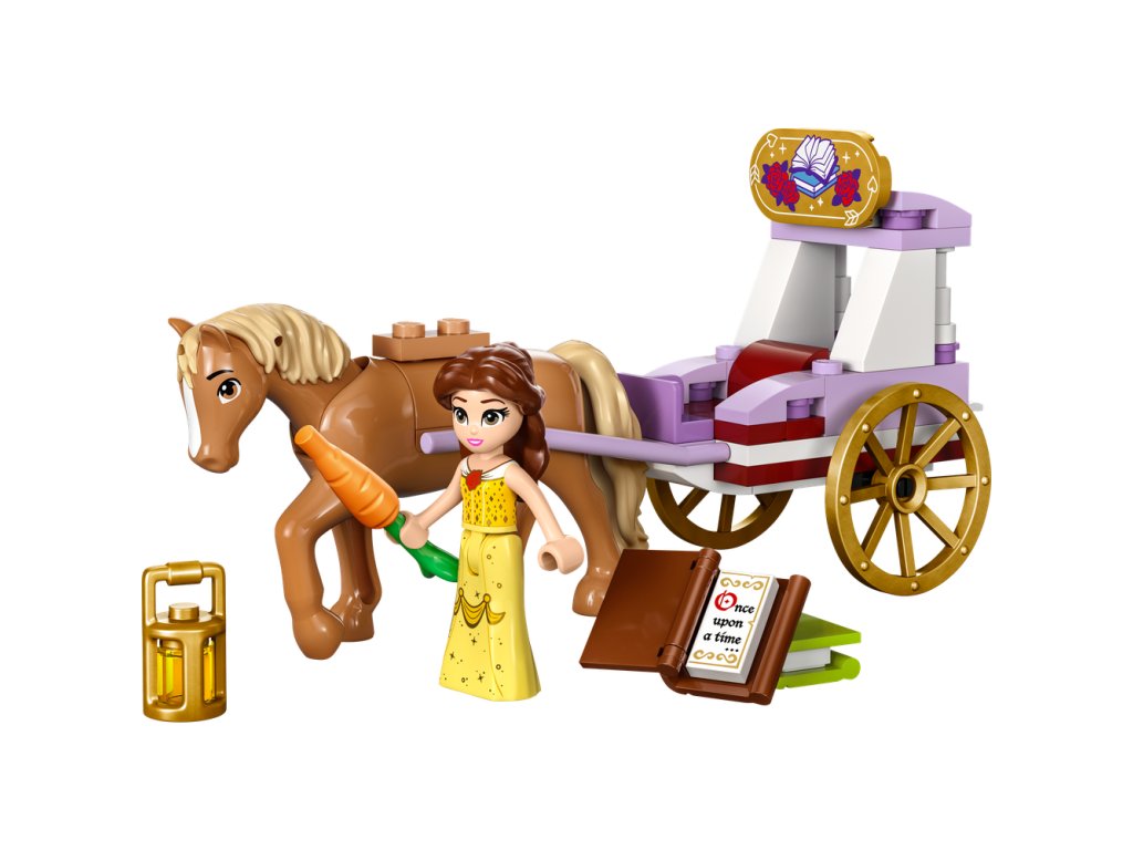 Kočiar má sedadlá a zadný priestor na 2 knihy, háčik na lampáš a ďalšie inšpiratívne herné prvky. Je tu minifigúrka Krásky LEGO ǀ Disney Princess a figúrka Phillipovho koňa LEGO ǀ Disney na začatie hry, navyše 2 zberateľské prsteňe s vymeniteľnými dekoráciami.