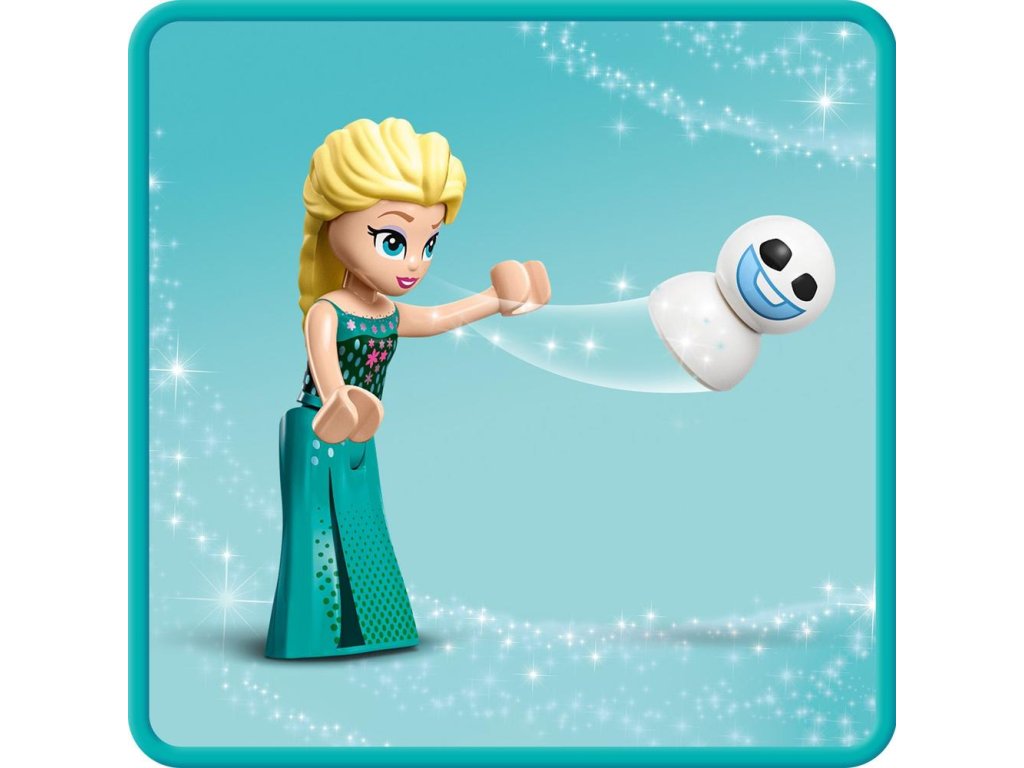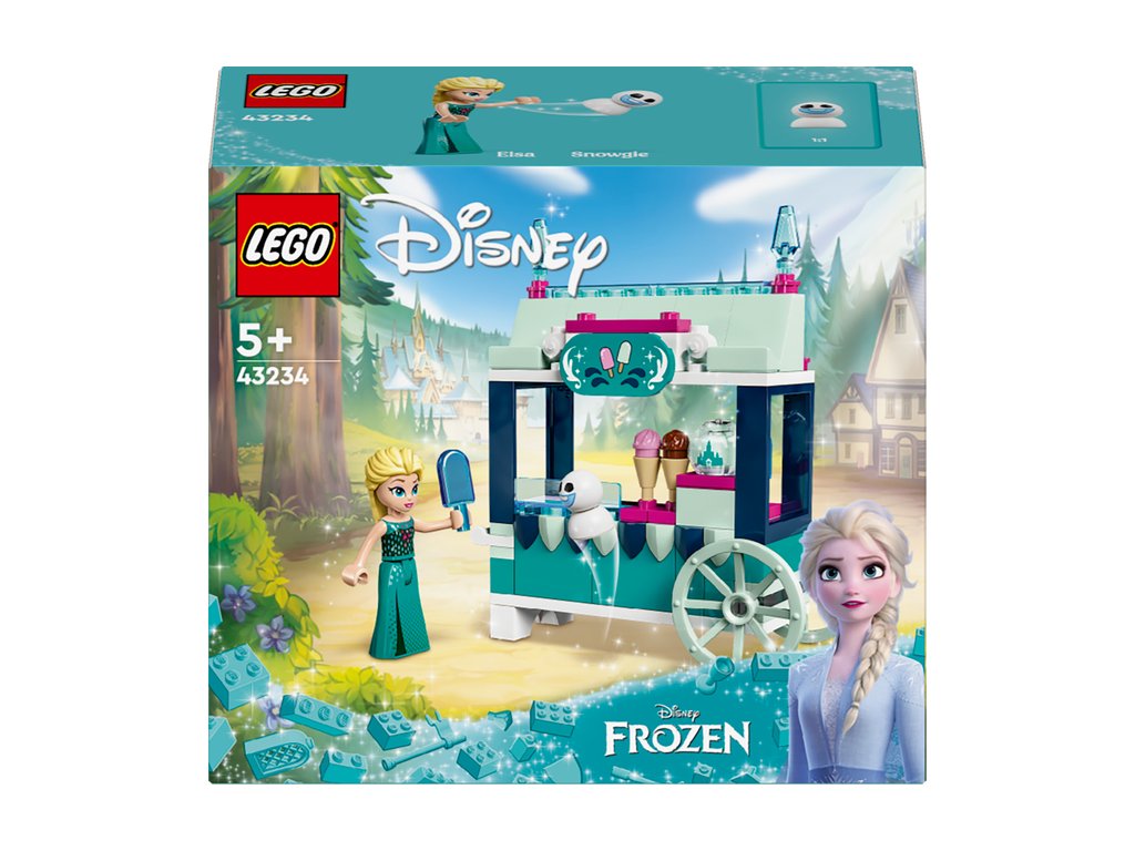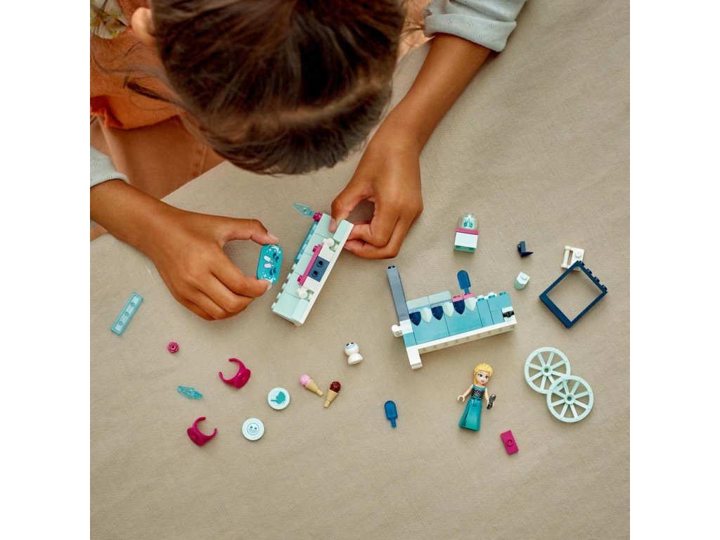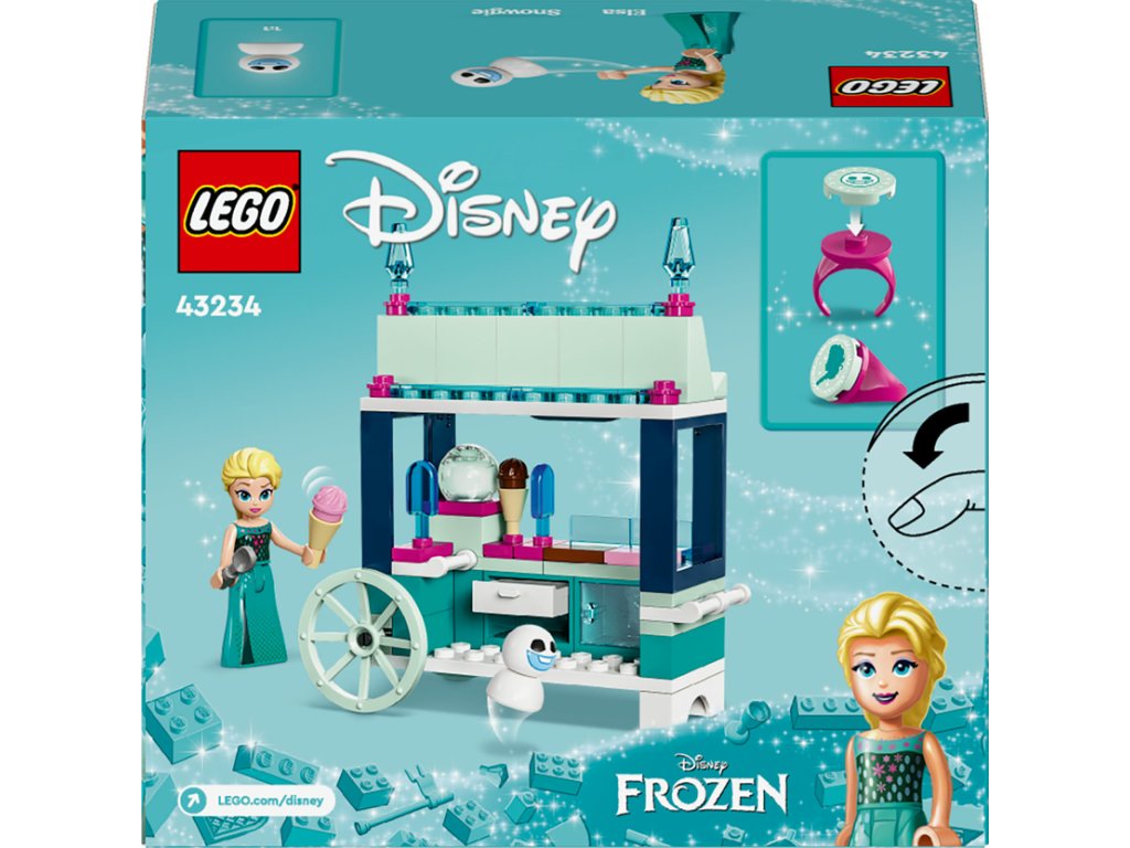 Balenie obsahuje zostaviteľný zmrzlinársky stánok so zmrzlinovačom, 2 kornútky, 2 nanuky a ďalšie prvky, ktoré inšpirujú vymýšľanie príbehov. Nájdete tu minibábiku Elsy LEGO ǀ Disney a figúrku snehuliačika LEGO ǀ Disney na hry na postavy, ako aj 2 zberateľské prstene s vymeniteľnými ozdobami.