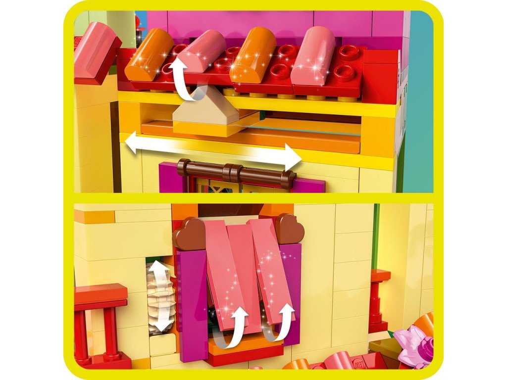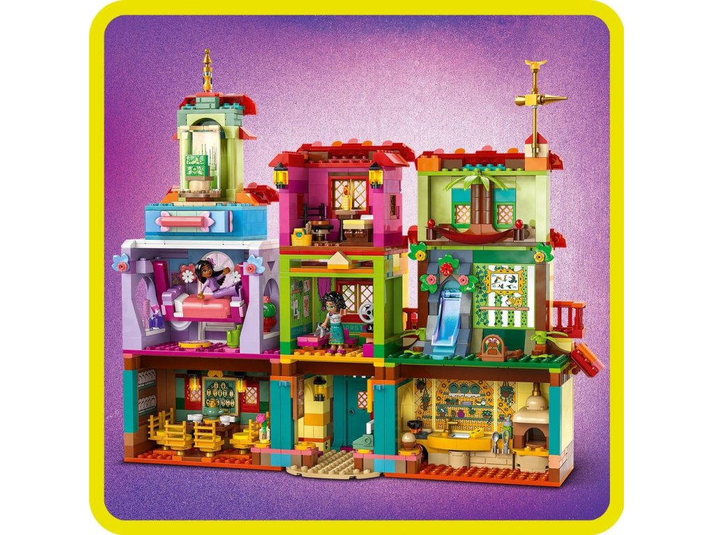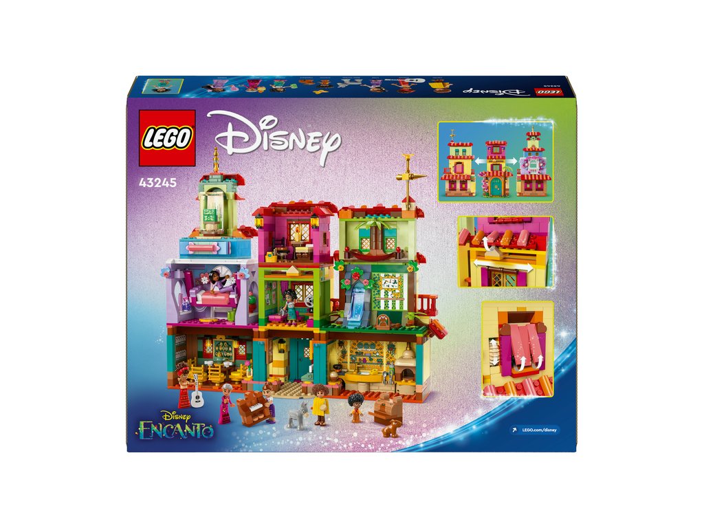 Táto stavebnica je zábavným nápadom na darček a obsahuje minibábiky LEGO ǀ Disney Mirabel, Abuelu, Isabel, Dolores, Luisu a Camila, mikrobábiku LEGO ǀ Disney Antonia a 2 zvieracie figúrky LEGO ǀ Disney. Deti aj dospelí sa môžu tešiť na rôzne detaily a domček možno pridať k ďalším stavebniciam LEGO pre deti a stavebniciam LEGO ǀ Disney zo série (predávané samostatne) pre ešte viac zábavy.