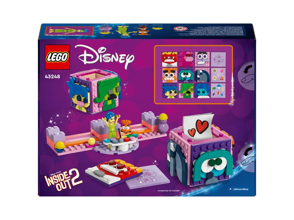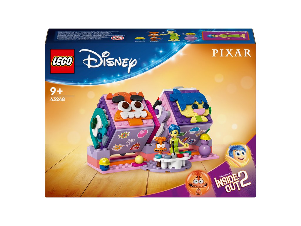 Očarte deti a fanúšikov filmu V hlave 2 od 9 rokov touto stavebnicou LEGO® ǀ Disney Kocky nálad podľa filmu V hlave 2 (43248), parádnou fantasy hračkou na hranie a vystavovanie. Model obsahuje 2 zostaviteľné kocky, každú s priestorom pre malé poklady, 9 náladových ceduliek, výstavný podstavec na kocky, minibábiky Radosti a Úzkosti LEGO ǀ Disney z filmu od štúdia Pixar so zodpovedajúcimi farebnými pamäťovými guľôčkami, a takisto figúrky Foremana a Margie LEGO ǀ Disney s pevnými klobúkmi.