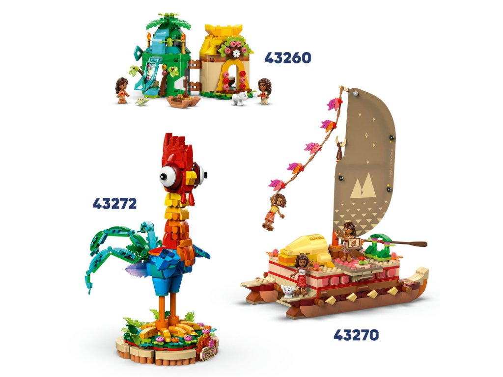 - Model lode z filmu Vaiana – Súčasťou stavebnice je loď s 3časťami a lanovka, menší čln s 2 plavákmi a úložným priestorom, kohút Heihei, Vaiana, Maui, Kotu a 5 ďalších postáv LEGO® ǀ Disney