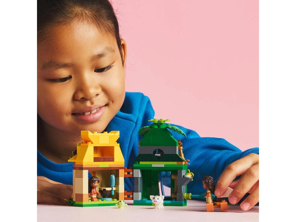 - Stavebnica LEGO® pre deti – Vystavte si stavebnicu s prvkami zasunutými vo vnútri, zinscenujte si obľúbené filmové momenty alebo vymýšľajte nekonečné množstvo nových príbehov s Vaianou, jej malou sestrou Simeou a prasiatkom Pua od Disney
