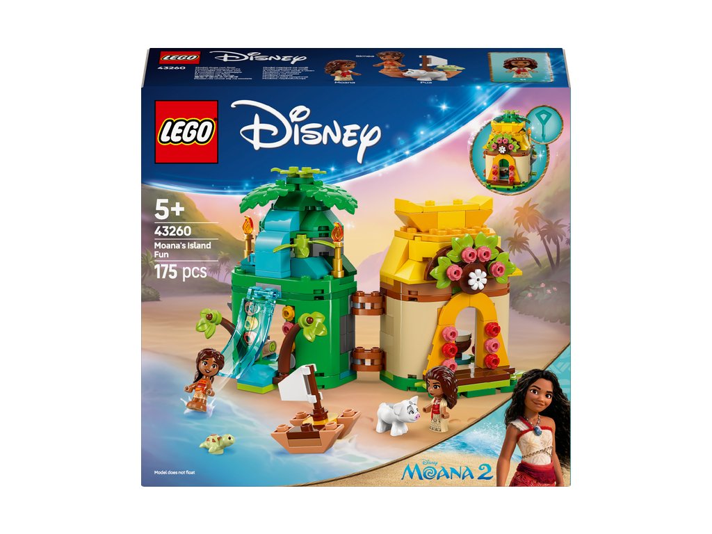 Fanúšikov Disney hrdinky Vaiany od 5 rokov čakajú fantastické dobrodružstvá v tejto fantasy stavebnici LEGO® ǀ Disney Vaiana a zábava na ostrove (43260). Tento zostaviteľný obojstranný model mikrosveta je inšpirovaný Disney rozprávkou Vaiana 2. Malá stavebnica skrýva obrovský svet vo vnútri. Na ostrove nájdete vodopádovú šmykľavku so skrytým vchodom a v dome zasa izby pre mikrobábiky LEGO ǀ Disney Vaianu a jej malú sestru Simeu, ako aj priestor pre prasiatko Pua. Súčasťou modelu je aj malá loďka a pútavé herné doplnky na vymýšľanie príbehov aj ostrov možno zamknúť kľúčom, vďaka čomu je táto prenosná stavebnica ideálna na hry na cestách.