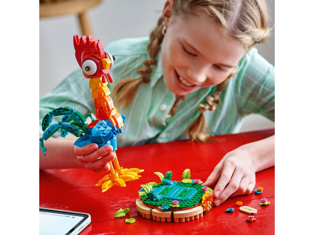Milovníci zvierat, filmov a všetky deti od 9 rokov si užijú stavanie farebného spoločníka Vaiany spohyblivou hlavou, krídlami a perím na chvoste, ktorého potom môžu postaviť na nohy alebo na podstavec s ozdobnými kvetmi a ceduľkou. Táto stavebnica pre dievčatá, chlapcov a fanúšikov Disney bude skvelou zostaviteľnou fantasy hračkou, o ktorej budú vš etci hovoriť. Model ponúka starším deťom aj dospelým milovníkom Disney zložitejší staviteľský projekt a poslúži ako výborný darček. Model si môžete vystaviť a pridať ho k ostatným stavebniciam zo série LEGO ǀ Disney (predávané samostatne). Staviteľov takisto čaká intuitívny zážitok zo stavania vďaka aplikácii LEGO Builder, v ktorej si môžu približovať a otáčať modely v 3D, ukladať si stavebnice a sledovať svoj pokrok.
