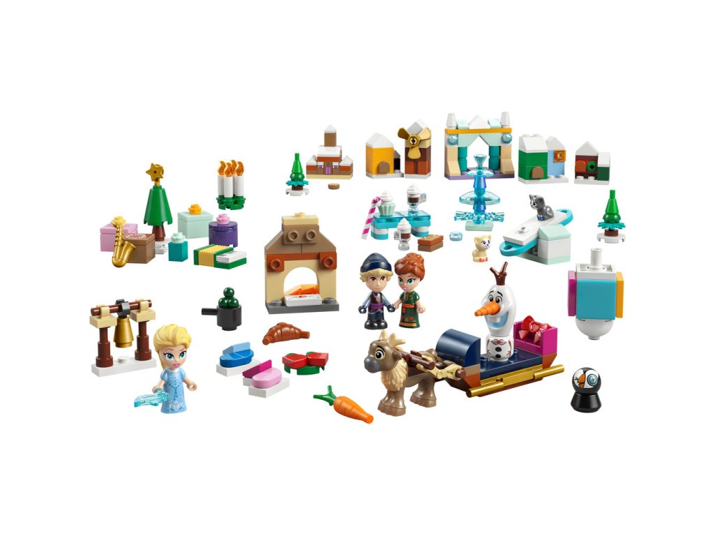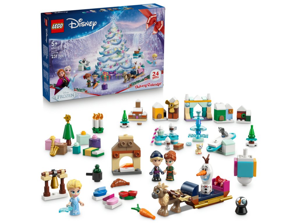 - Disney postavičky a ešte viac – Adventný kalendár obsahuje postavičky Elsy, Anny, Kristoffa, Olafa a Svena LEGO® ǀ Disney, 2 postavičky mačiatok LEGO ǀ Disney, miniatúrny hrad Arendelle a ľadový krištáľový strom