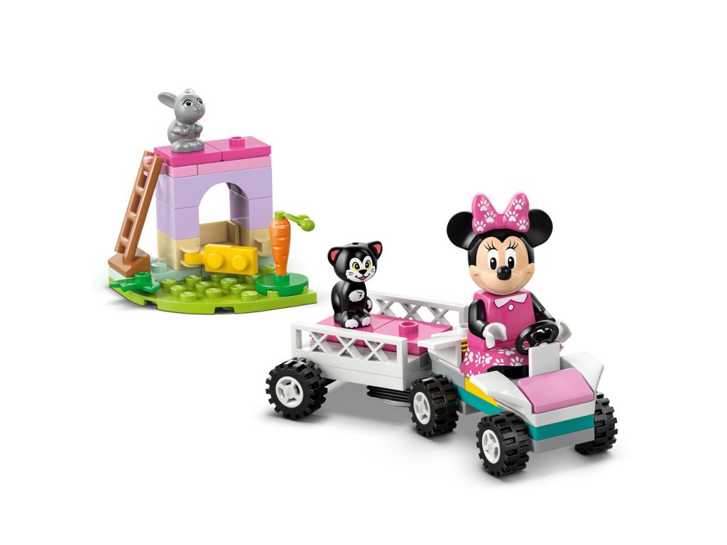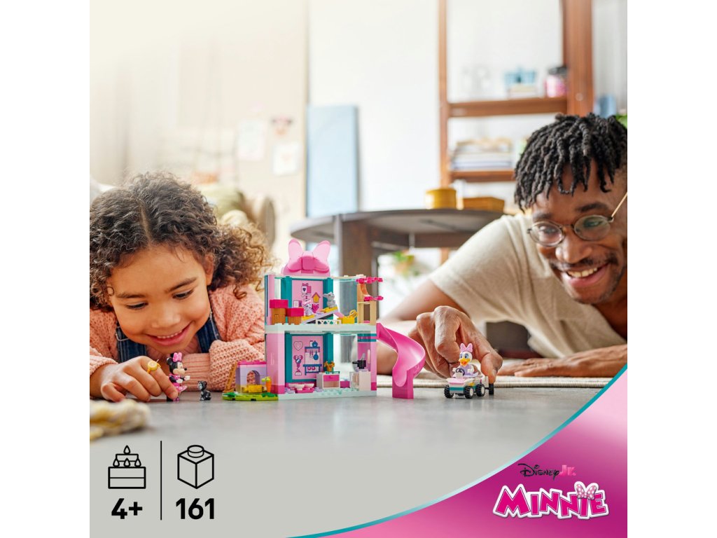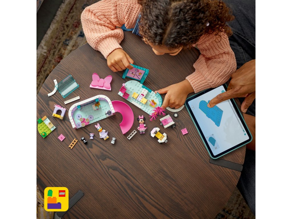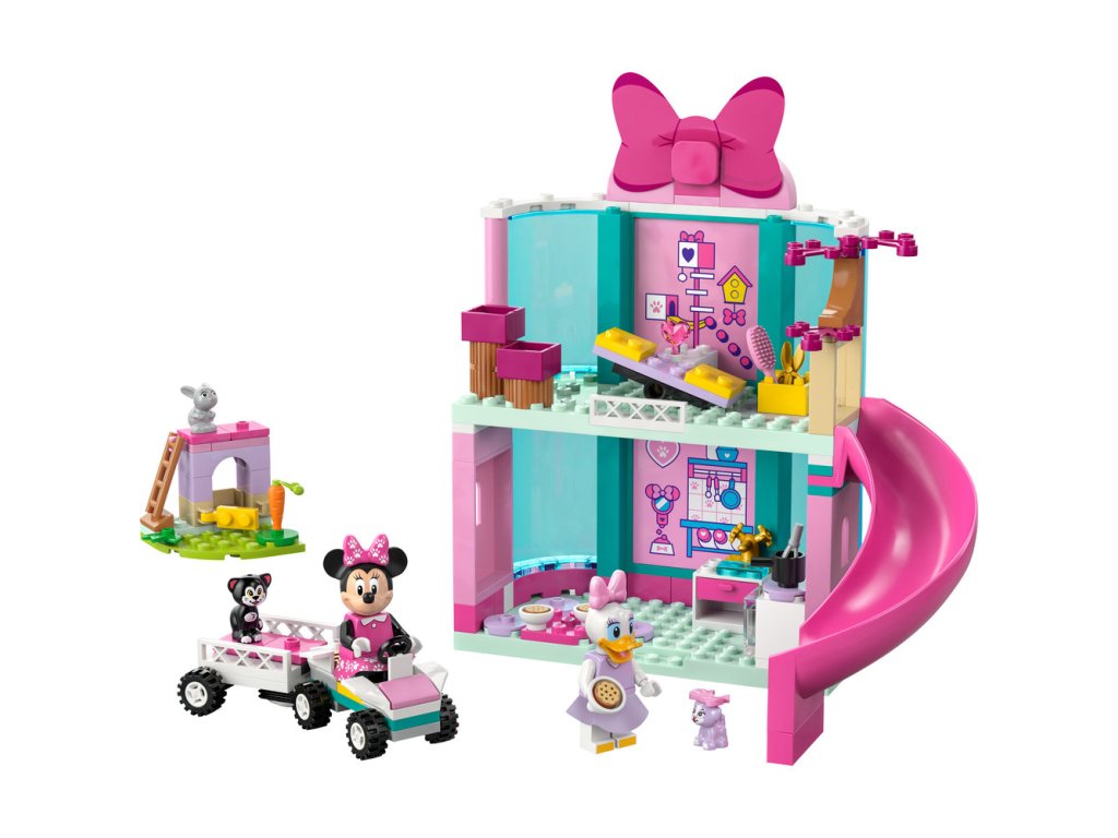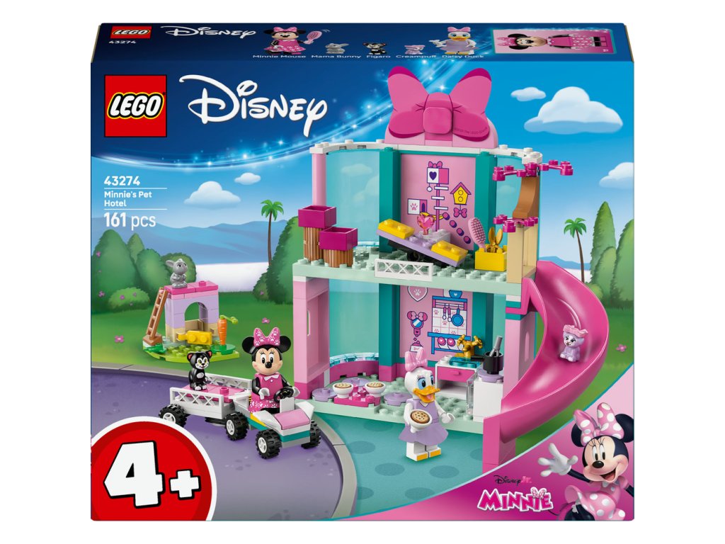 Fanúšikovia Mickey Mouseovho klubu a auta Disney od 4 rokov si užijú hru na starostlivosť o zvieratká a precvičia si stavanie s touto stavebnicou LEGO® ǀ Disney Minnie a hotel pre domácich miláčikov (43274). Model poslúži ako skvelý darček pre malé deti a obsahuje dvojposchodový hotel so šmykľavkou, hračkársku kuchyňu, búdu pre zajačikov, auto s malým prívesom a ďalšie prvky. V stavebnici nájdete aj minifigúrky Myšky Minnie a Kačky Daisy LEGO ǀ Disney, ako aj postavy domácich miláčikov Figara, Creampuff a Mamy zajačice LEGO ǀ Disney.