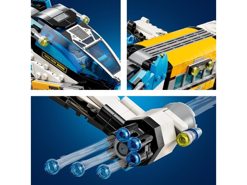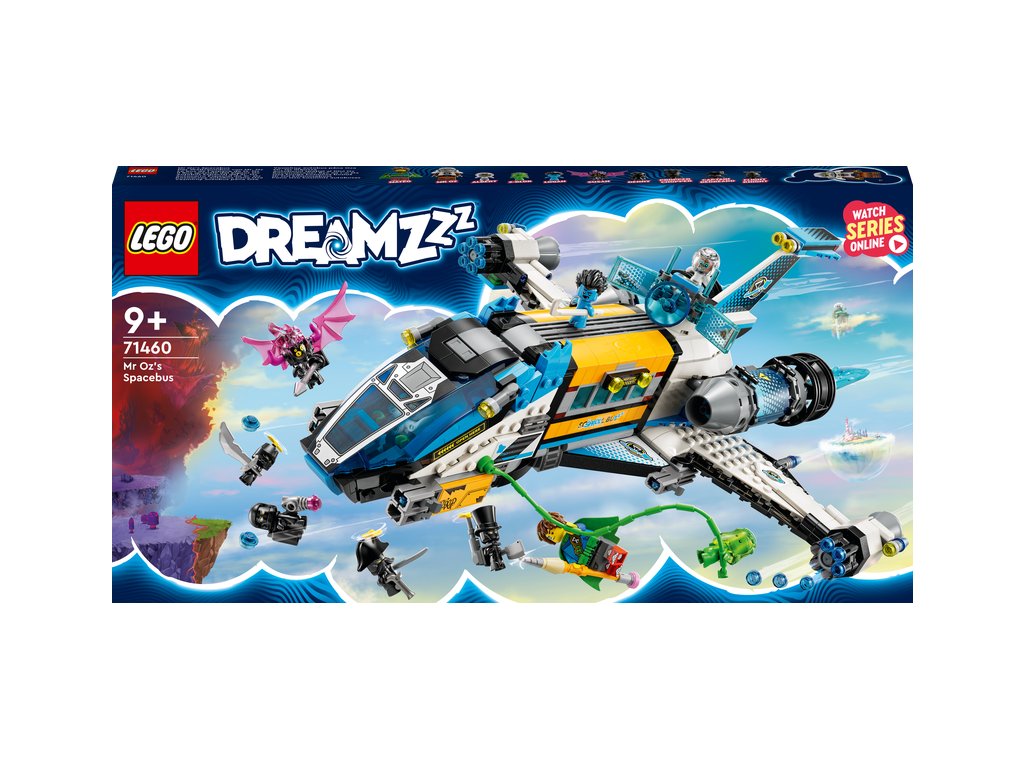 Doprajte deťom od 9 rokov divokú jazdu do Sveta snov s touto stavebnicou LEGO® DREAMZzz™ Vesmírny autobus pána Oza (71460). Model je založený na príbehoch z napínavého seriálu a deti si s ním môžu postaviť vesmírny autobus pána Oza a posadiť doň minifigúrky dôležitých postáv vrátane Matea a pána Oza, ktorí pomôžu zachrániť svet snov pred bandou stvorení z nočných môr. 1 raketoplán, 2 spôsoby ako ho postaviť Keď si deti postavia základný vesmírny školský autobus, môžu sa pustiť do svojho vlastného dobrodružstva a prispôsobiť si ho raketami a blastermi, alebo k nemu postaviť obrovské delo, hviezdnu stíhačku a mini vesmírnu loď. Čaká ich teda dvojnásobok zábavy a hry. Medzi ďalšie skvelé funkcie patrí otvárací kokpit a zadné nákladné rampy, rotujúce trysky a takisto vystreľujúce blastery. Fantastické minifigúrky Prepracované minifigúrky pána Oza a Matea vdýchnu dobrodružstvám život. Deti môžu naložiť p