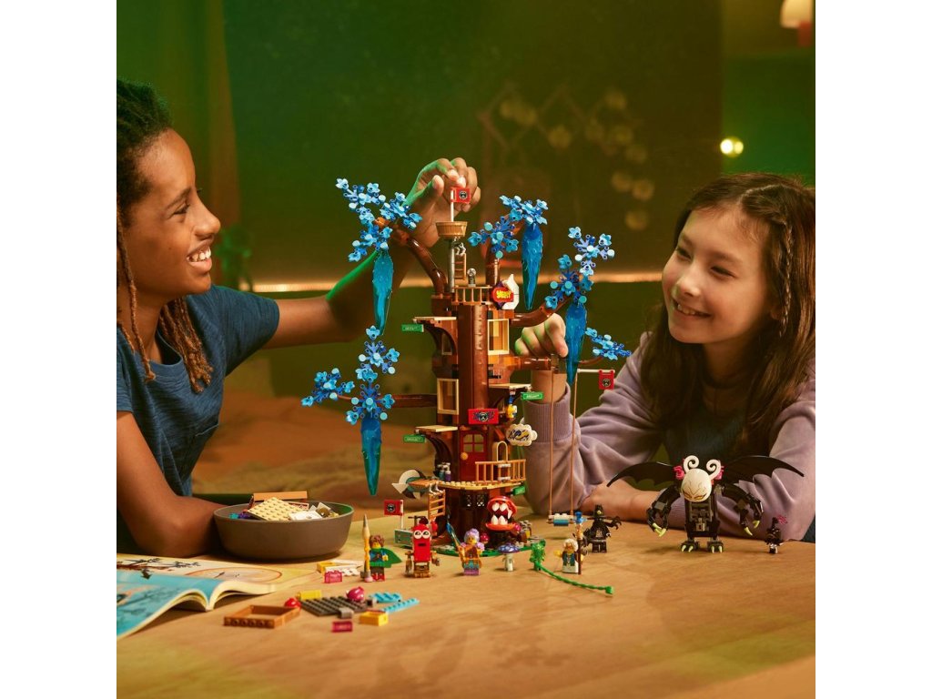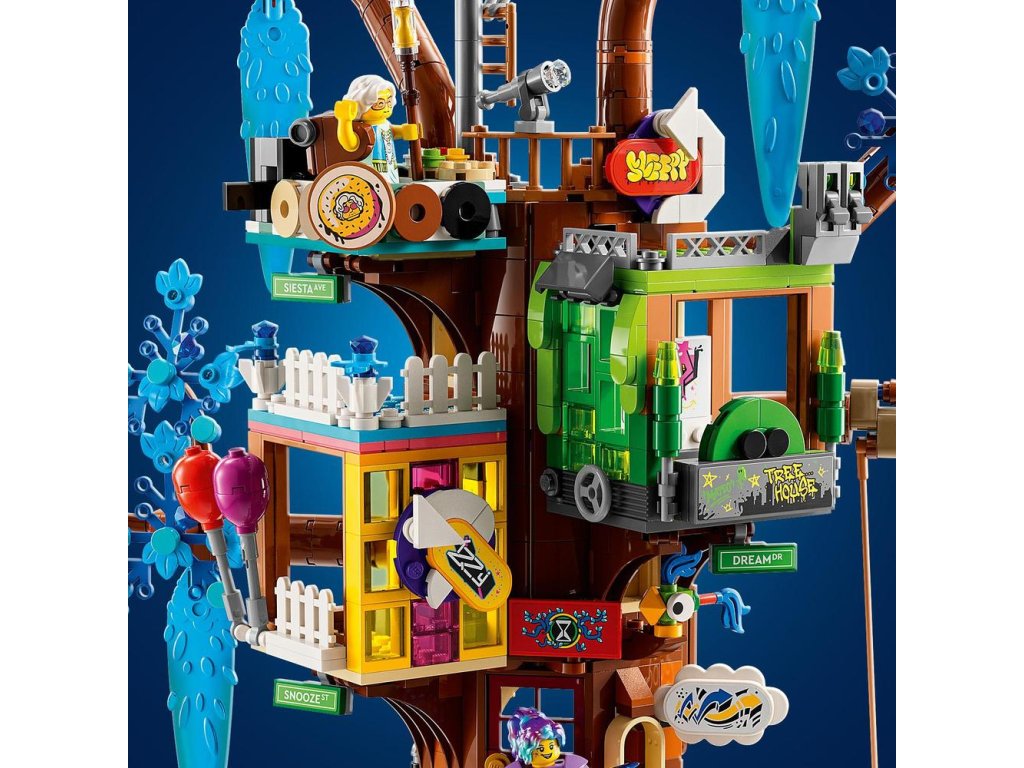 - 3 sekcie – V LEGO® DREAMZzz™ Fantastický domček na strome nájdete kuchyňu pani Castillovej, detskú izbu Izzie a Matea, obývačku a takisto vyhliadkovú vežu a hojdačku