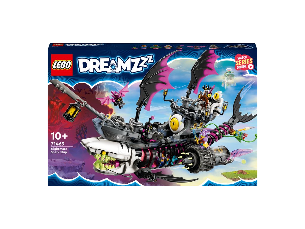 Deti od 10 rokov sa môžu ponoriť do Sveta snov s touto stavebnicou LEGO® DREAMZzz™ Žraločia loď z nočných môr (71469). Nočný lovec sa zmocnil Izzinho obľúbeného plyšáka a spojil ho s pirátskou loďou, čím vytvoril jedno smrtiace monštruózne vozidlo, ktoré si teraz deti môžu postaviť. 1 vozidlo, 2 možnosti stavania Deti si môžu vybrať z 2 spôsobov na zostavenie vozidla – v režime lode alebo v režime tanku. V režime lode do modelu pridajú výkonné motory a plachty, zatiaľ čo v režime tanku zasaparádne doplnky a lietajúce oči. Tieto 2 verzie podporia detskú kreativitu a doprajú im dvakrát takú dlhú hru. Parádne prvky Žraločia loď je plná funkcií, ktoré si deti okamžite obľúbia. Jej čeľusť môžu otvoriť a umiestniť do nej minifigúrku, stlačením tlačidla zasa objavia skrytú truhlicu s pokladom, zadnú kabínu môžu odstrániť a mnoho ďalšieho. Model je takisto vybavený rotujúcimi vežičkami na oboch stranách, kt