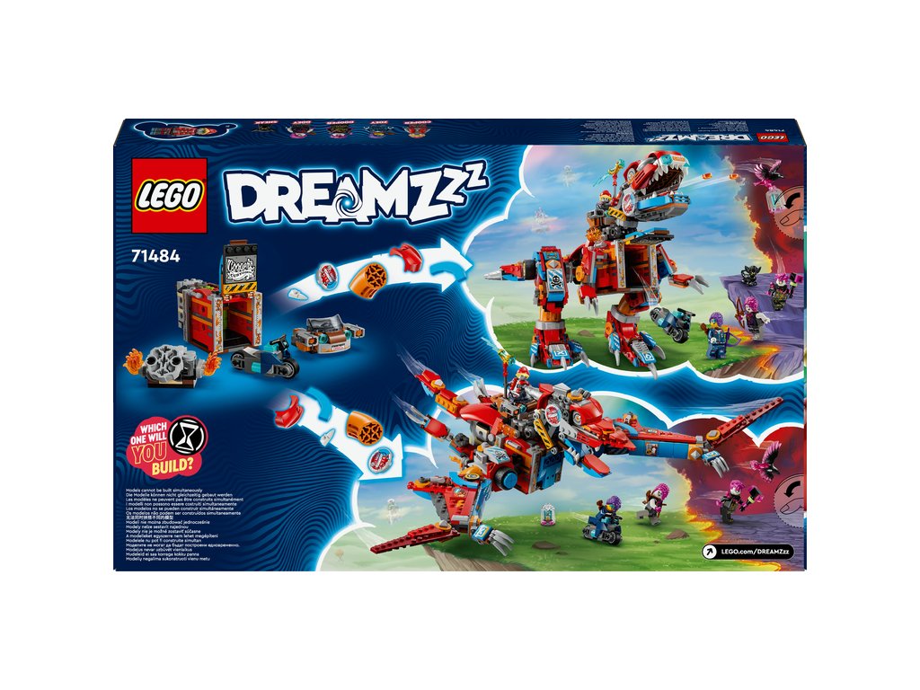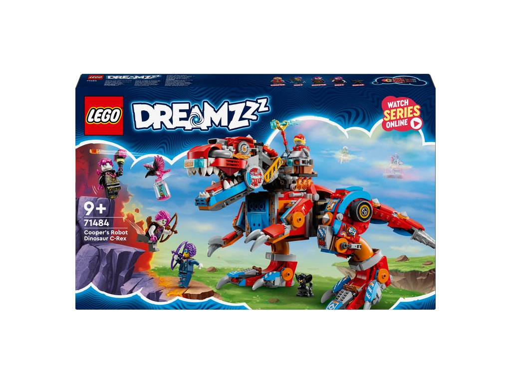 Daj krídla fantázii so zostaviteľnou hračkou dinosaura T. rex LEGO® DREAMZzz™ Cooper's Robot C-Rex (71484) pre deti od 9 rokov. Súprava, inšpirovaná napínavým televíznym seriálom, ponúka dievčatám a chlapcom 2 spôsoby, ako postaviť veľkolepý model dinosaura.