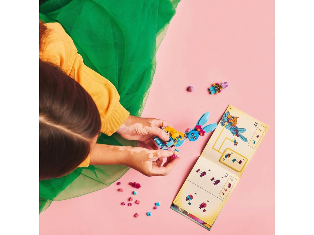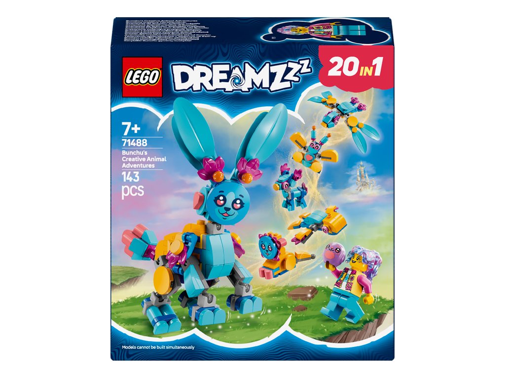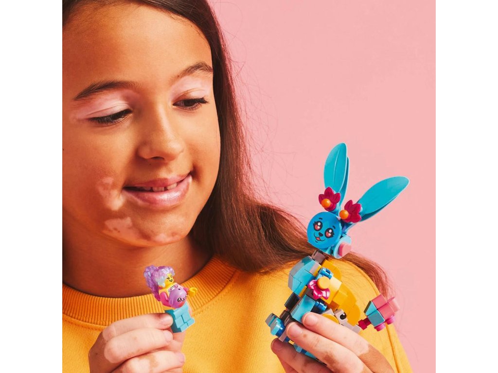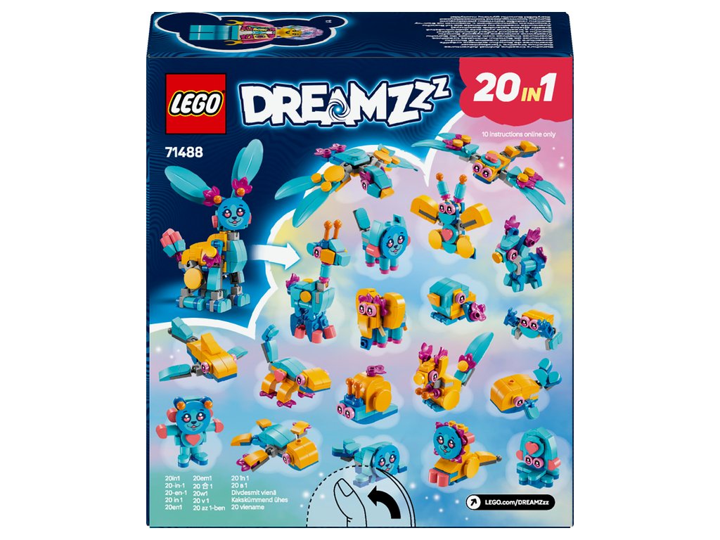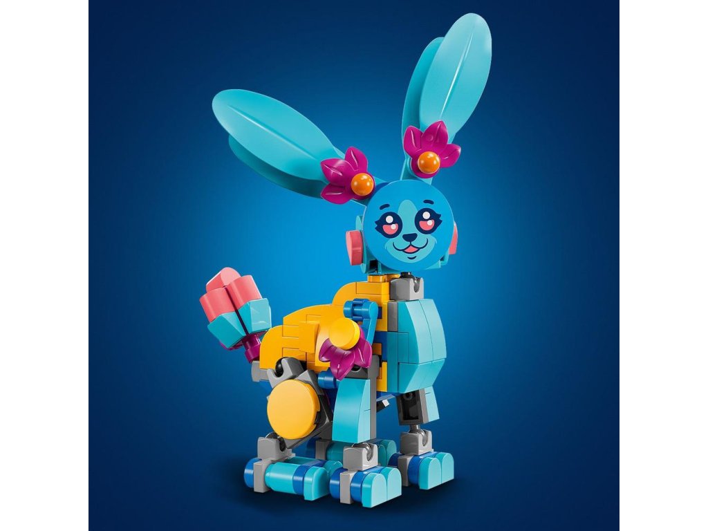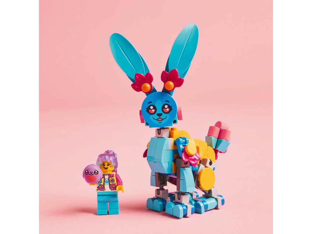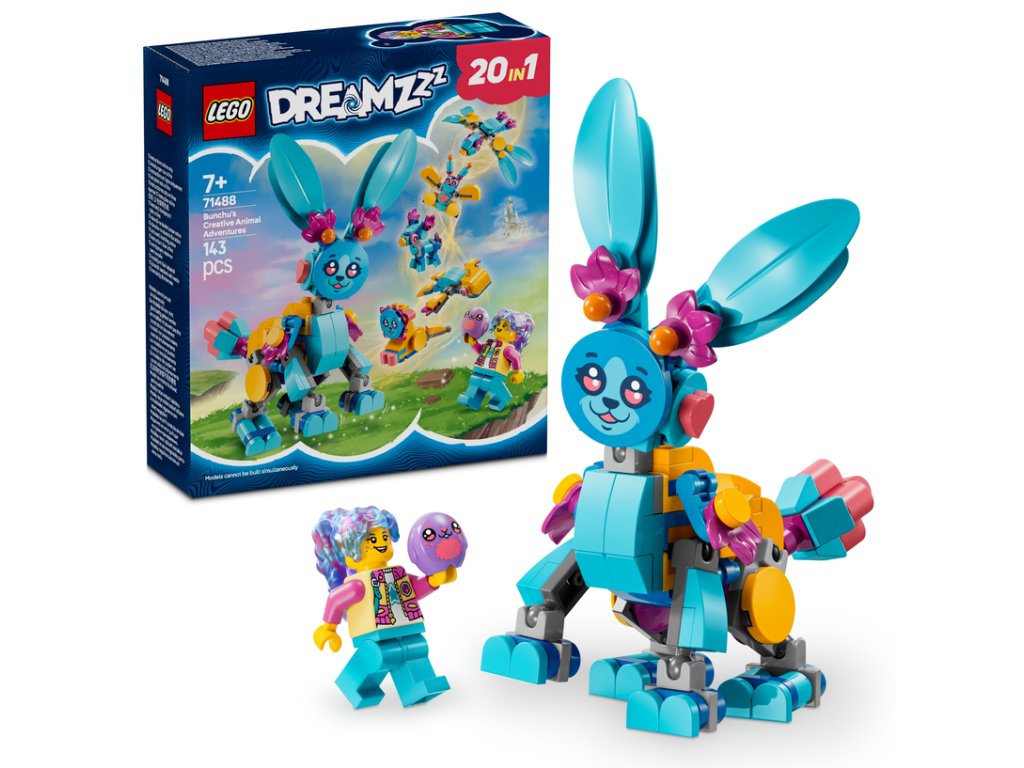Deti si užijú hodiny kreativity počas tvorby roztomilého králika Bunchu s pohyblivými nohami, rukami, chodidlami, chvostom a ušami, ktorého môžu následne prestavať na 19 rôznych zvieratiek. Medzi tieto možnosti patrí lev, korytnačka, jeleň, motýľ, vážka a ďalšie! Túto fantasy zvieraciu stavebnicu oživí minifigúrka Izzie, ktorá má oblečený nový outfit a v rukách má plyšovú hračku. Deti čakajú tvorivé hry na postavy a vymýšľanie nových dobrodružstiev pre hrdinku zo sveta LEGO DREAMZzz a jej zajačieho pomocníka.