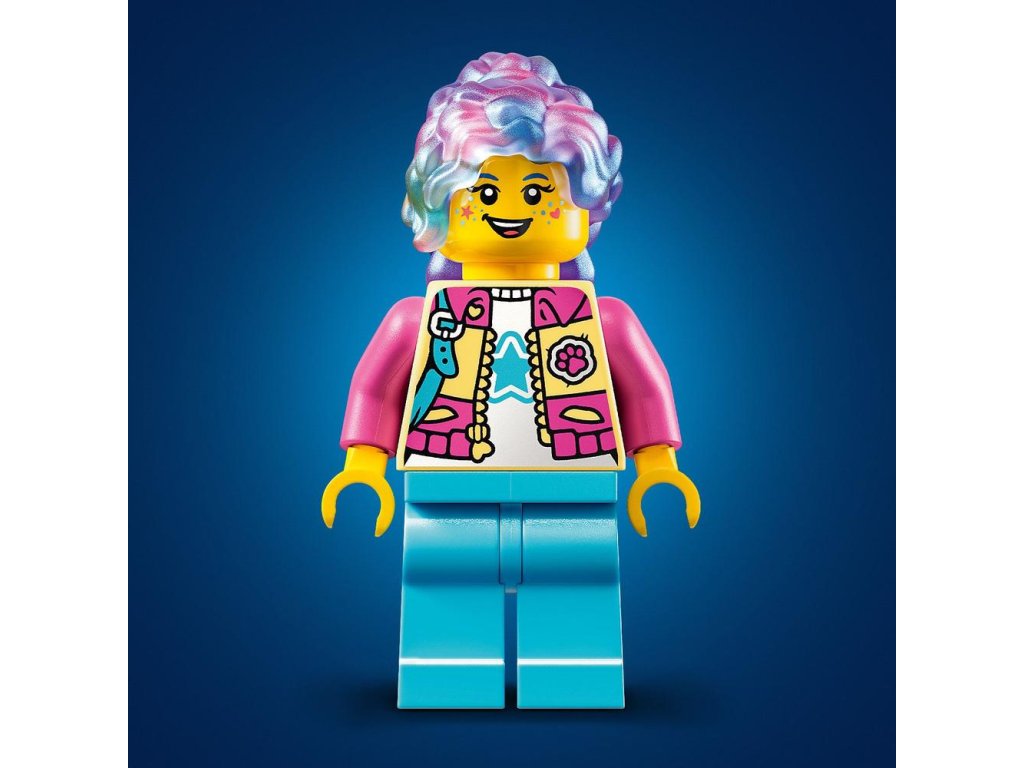 - Minifigúrka LEGO® – Stavebnica inšpiruje k tvorivým hrám na postavy a obsahuje Izzie, hrdinku LEGO DREAMZzz™,ktorá má na sebe nový outfit a dodáva sa s plyšovým doplnkom