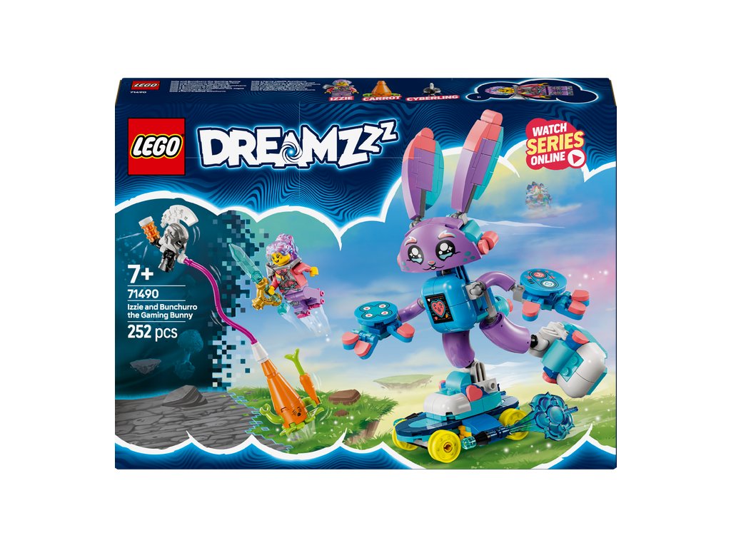 Vydajte sa na napínavé dobrodružstvo so stavebnicou LEGO® DREAMZzz™ Izzie a herný zajačik Bunchurro (71490). Hračkárska stavebnica je inšpirovaná napínavým televíznym seriálom a dievčatá a chlapci od 7 rokov si užijú hodiny tvorivých hier a pomôžuhrdinke Izzie zachrániť Mrkvu zo sveta snov pred Kybertvorom.