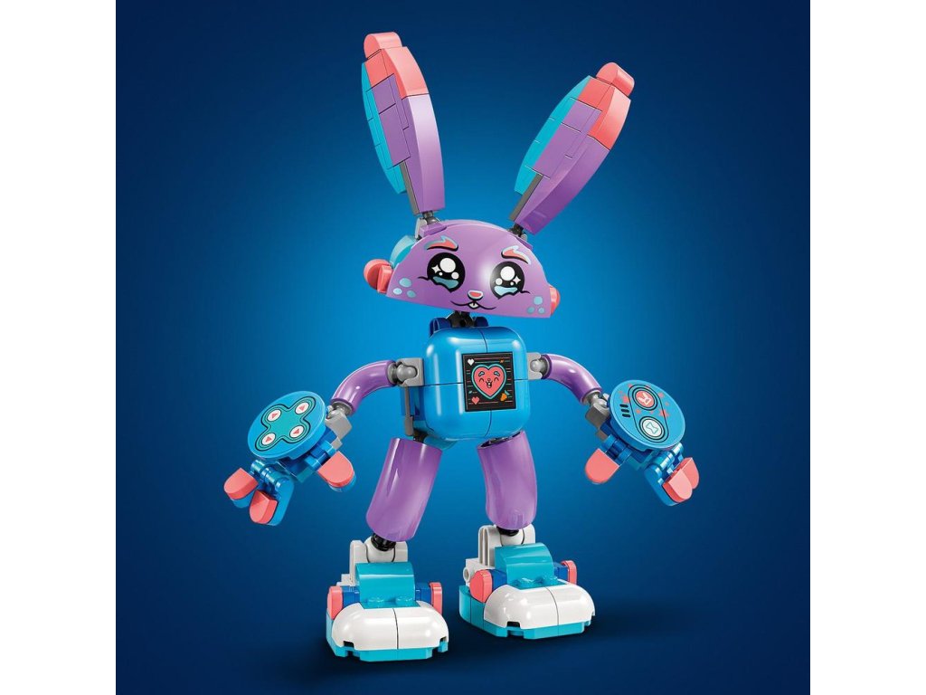 Mladí snívajúci si užijú stavanie figúrky Bunchurra, parádnej novej verzie zajaca Bunchu, ktorá má na bruchu obrazovku s videohrou a nosí rukavice a tenisky s hernými ovládačmi. Potom objavi a 2 spôsoby, ako model premeniť - model zajačika môžu obohatiť o skateboard a posilňovače či o úžasný tryskový batoh. Každá verzia hračkárskeho zajačika je veľmi pohyblivá a minifigúrka Izzie vdýchne stavebnici život, keď ju pripevníte k zadnej časti Bunchurra a pustíte sa s ňou do tvorivých hier na postavy.