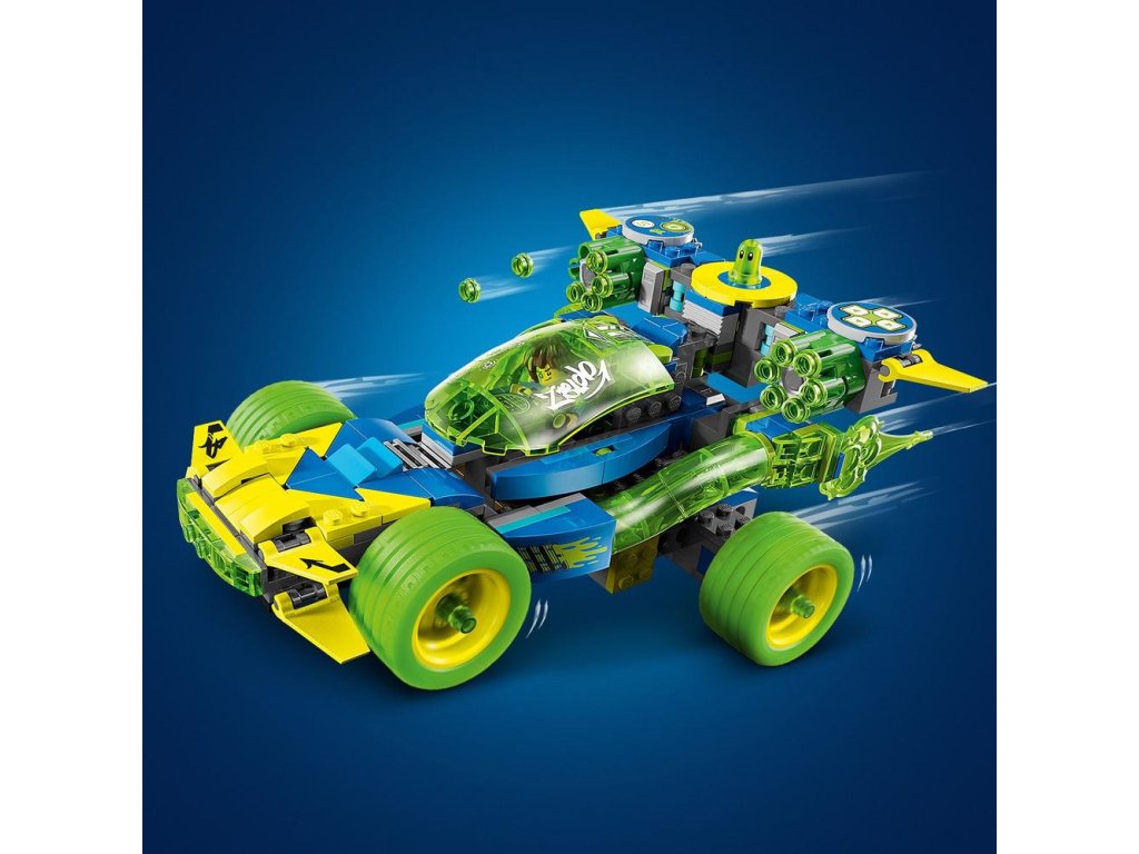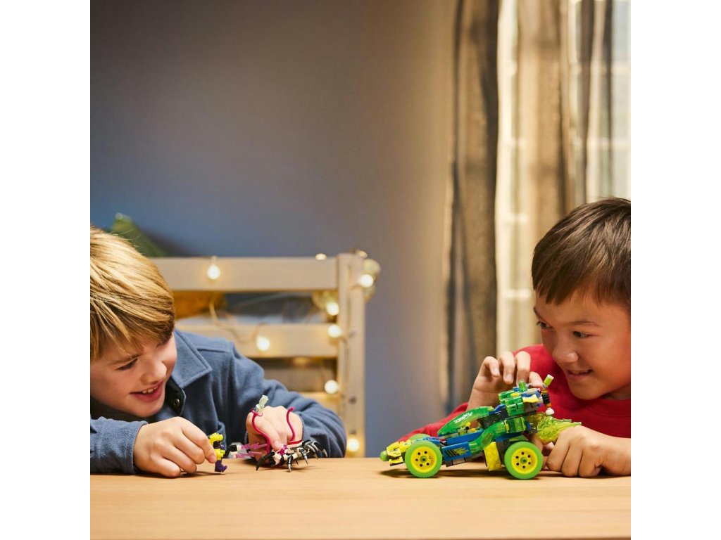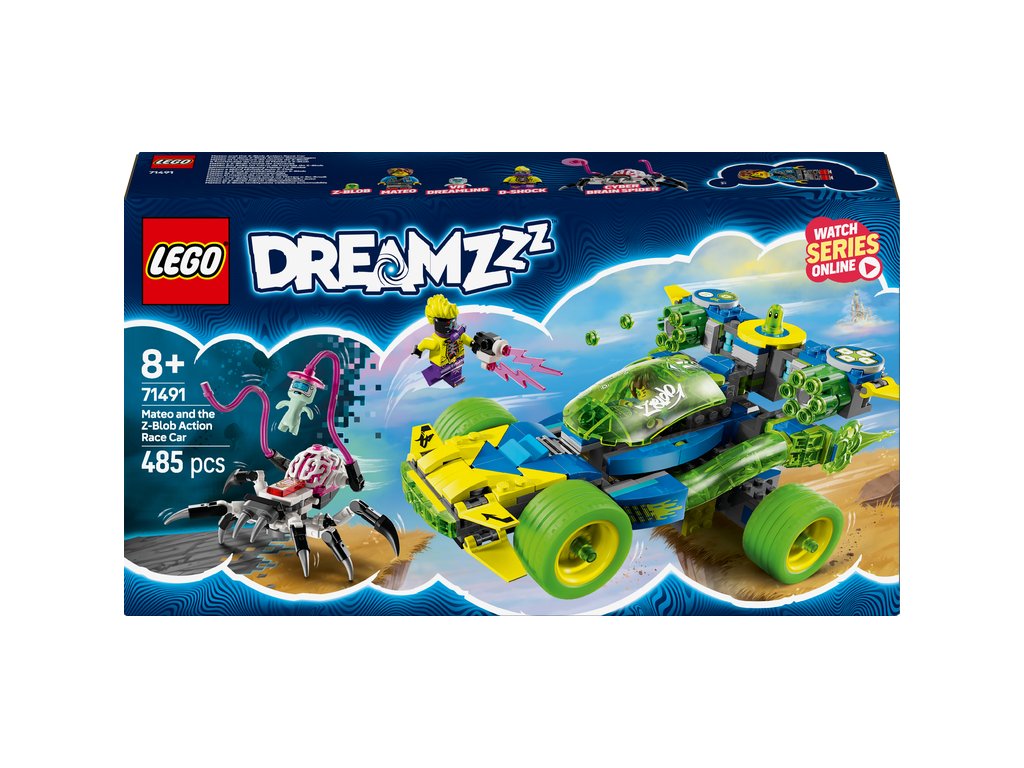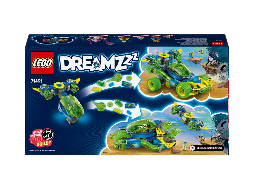 Mladých snívajúcich čakajú 2 možnosti stavania tejto stavebnice. Najprv si užijú stavbu základného modelu a potom ho prestavajú na terénne pretekárske auto alebo na rýchlu motorku. Medzi parádne detaily patrí odnímateľné čelné sklo, rotujúce kolieska a 2 vystreľovače šiestich projektilov, ako aj odnímateľné moduly, ktoré môžete pripevniť k iným stavebniciam zo série LEGO DREAMZzz 2025. Hrdina Mateo a zloduch D-Shock vdýchnu celej akciiživot spolu so Z-Blobom, Kybermozgovým pavúkom a Virtuálnym stvorením zo Sveta snov, ktorí naštartujú nápaditú hru.