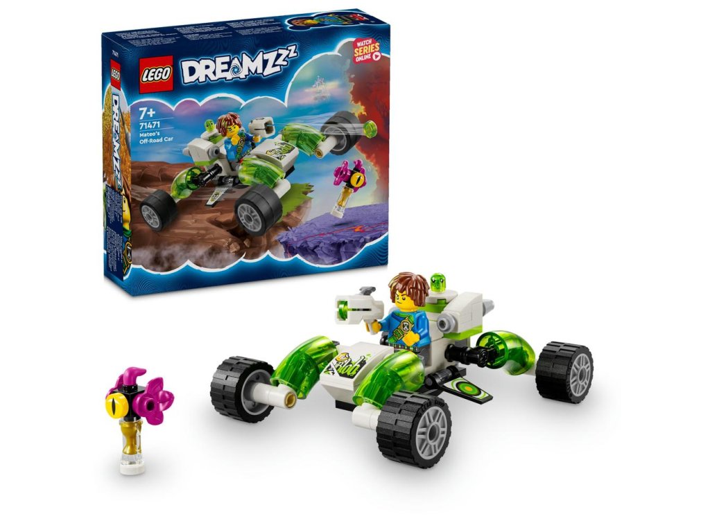 Stavebnica vychádza z napínavého televízneho seriálu a deti v tom dokážu pomôcť hrdinom Mateovi a Z-Blobovi získať späť čarovné presýpacie hodiny, že si postaví hračkárske vozidlo ako púštnu buginu alebo štvorkolku. Táto akčná hračka ponúka 2 napínavé možnosti stavania a podnietenia detí, aby rozvíjali svoju fantáziu a vybrali si vlastne dobrodružstvá. V režime buginy ide o veľké terénne vozidlo s otáčaním sa kolesami av režime kvadrokoptéry je z najzásadnejšieho kompaktného lietajúceho stroja s nadupanými zadnými motormi. Stavebnice oživujú postavičky LEGO DREAMZzz vrátane detailne prepracovanej minifigúrky Matea, ktorá sa dodáva s vystreľovačom. Model obsahuje aj figúrky Škodliviek a Mateovho lepkavého pomocníka Z-Bloba, takže deti môžu byť skromne a postaviť si vlastné dobrodružstvo snov.