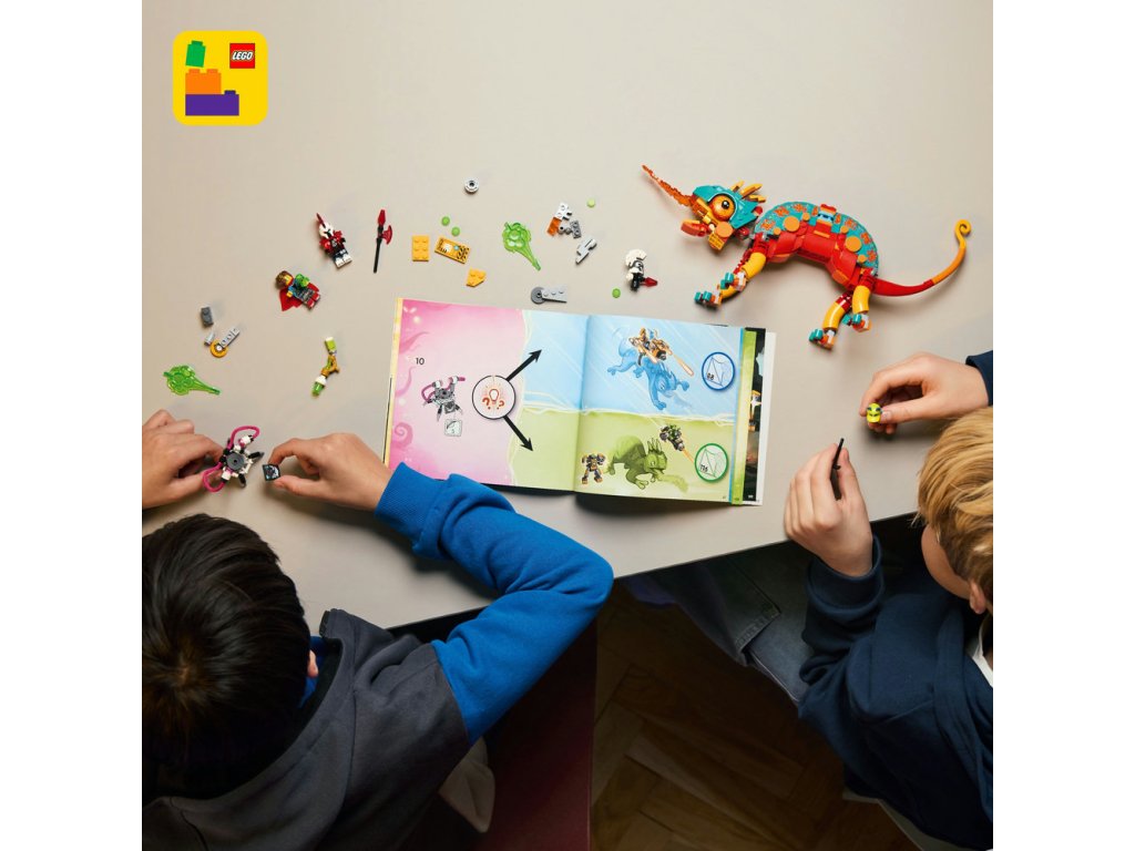 - Fantasy zvieracia stavebnica – Doprajte deťom od 7 rokov tvorivú hru podľa ich predstáv so stavebnicou LEGO® DREAMZzz™ Mateo a jeho ohnivý chameleón, ktorá ponúka 2 rôzne možnosti stavby