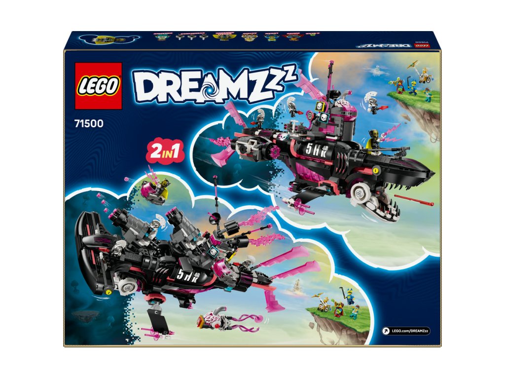 - Hračkárska loď – Popustite uzdu svojej fantázii so stavebnicou LEGO® DREAMZzz™ Žraločkoponorka z nočných môr pre deti od 9 rokov, ktorá ponúka 2 možnosti stavania